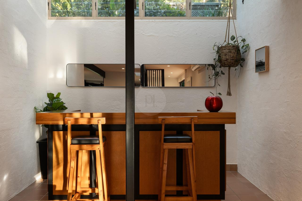 Step outside to enjoy established gardens, a sparkling pool, and a serene courtyard that encourages outdoor living and creative inspiration. The balcony provides a leafy outlook, perfect for capturing tranquil or aspirational scenes. Unique features such as the atrium bar add sophistication, making this property ideal for contemporary fashion campaigns, retro-inspired films, or lifestyle shoots.