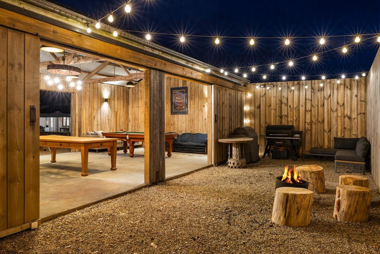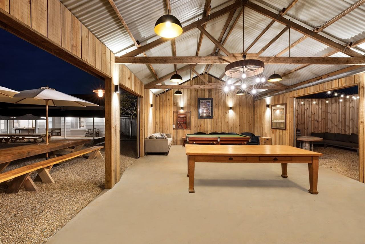 The farmhouse-style kitchen opens seamlessly to a sunlit courtyard, allowing for fluid indoor-outdoor shooting and a variety of natural, dynamic scenes. A separate barn-style games room and expansive outdoor living areas add depth and versatility, offering multiple styled zones perfect for capturing unforgettable moments, bringing creative visions to life.