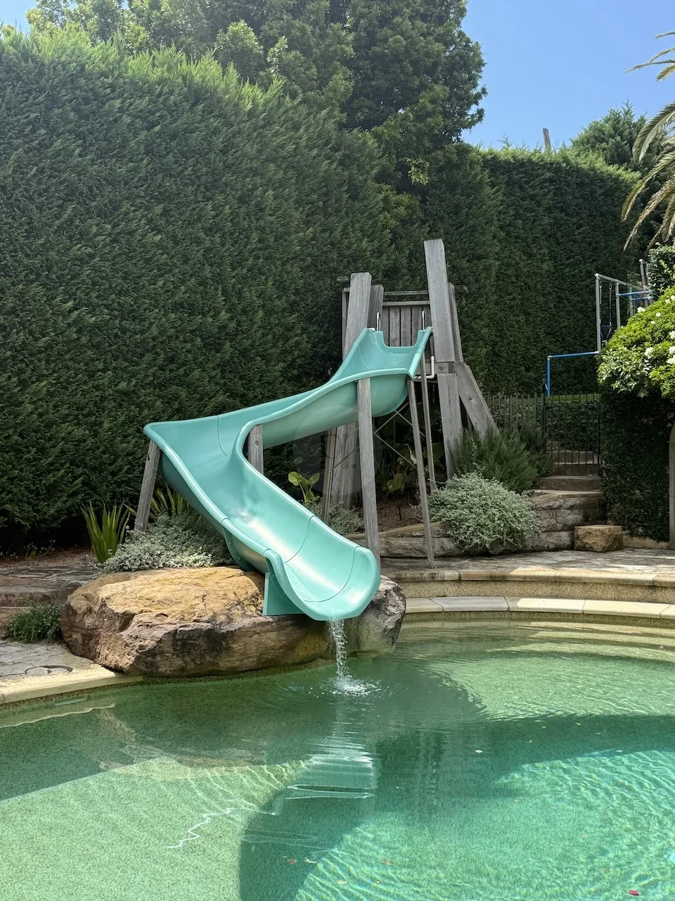 Step into the lush garden/backyard, relax in the spa/jacuzzi, or explore the sports zone for dynamic shots that stand out. The blue large pool slide and mediterranean pool area are unique and perfect for fashion and swimwear / active wear photoshoots. The coloured kitchen and statement tiles add a touch of character to your visuals, while the driveway offers convenience for production equipment and crew.