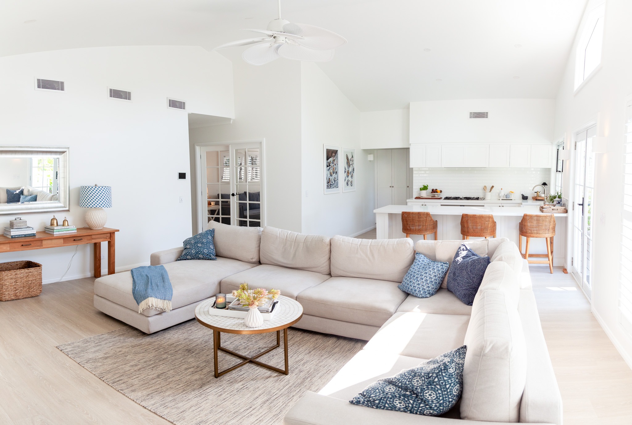 Inside, you’ll find a beautifully curated interior that seamlessly blends Coastal and Hamptons styles. The space is bright, airy, and open, creating a relaxed yet sophisticated atmosphere, with a spacious living area that flows effortlessly throughout each space. From the chic kitchen to the serene bathrooms, each room is designed to highlight the home’s relaxed charm and timeless appeal.