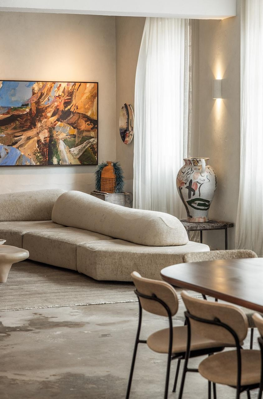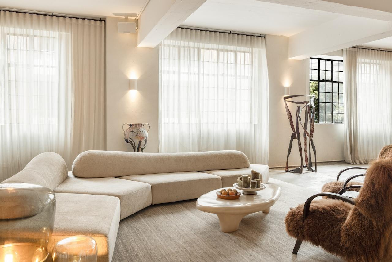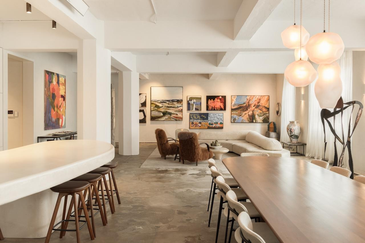 Serene Abode is defined by its gentle curves, architectural lines, and thoughtfully selected furnishings that bring warmth and personality to the space. Vibrant artwork punctuates the neutral palette, creating visual interest without overpowering the minimalist aesthetic. Every corner of the apartment has been styled with intention, offering unique vignettes and layered textures that lend themselves beautifully to creative productions.