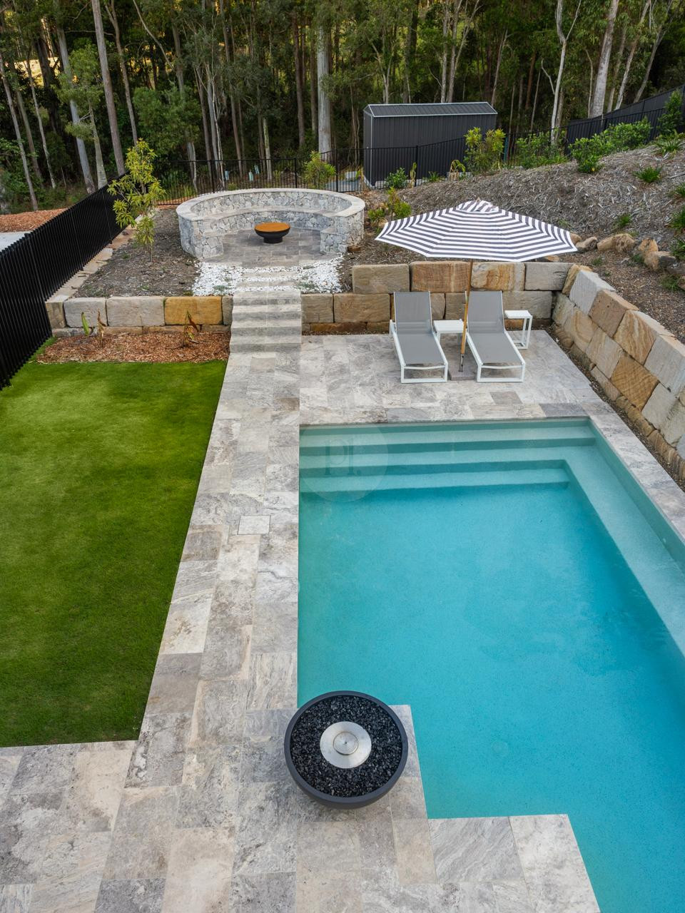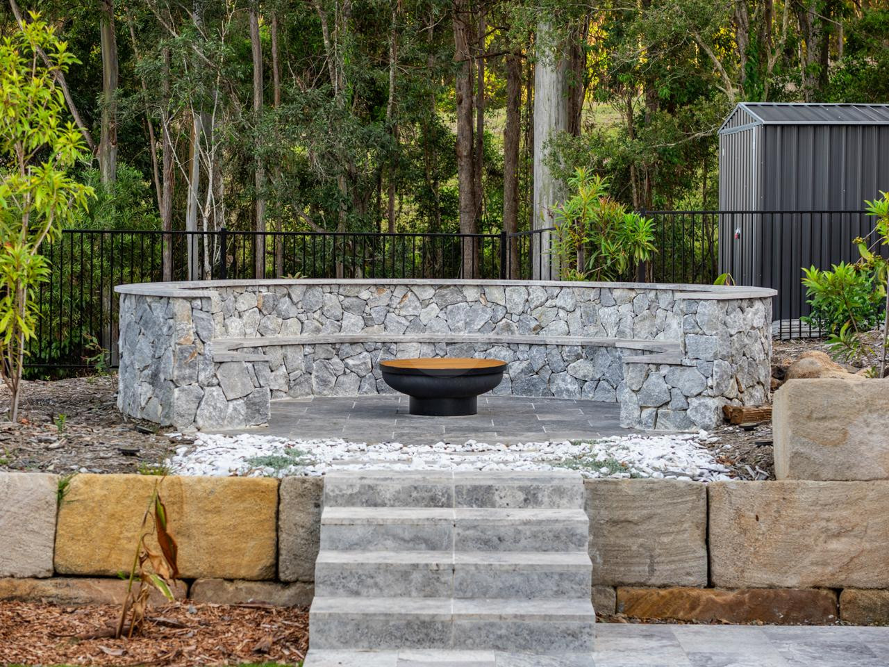 Outdoor spaces are designed for relaxed, organic storytelling, including a large stone fire pit with seating for 10, multiple outdoor living zones, a balcony and verandah for capturing natural light and alfresco living. With a leafy hinterland outlook, every angle feels cinematic and aspirational, ideal for wellness brands, family-focused campaigns, architecture shoots and editorial content.