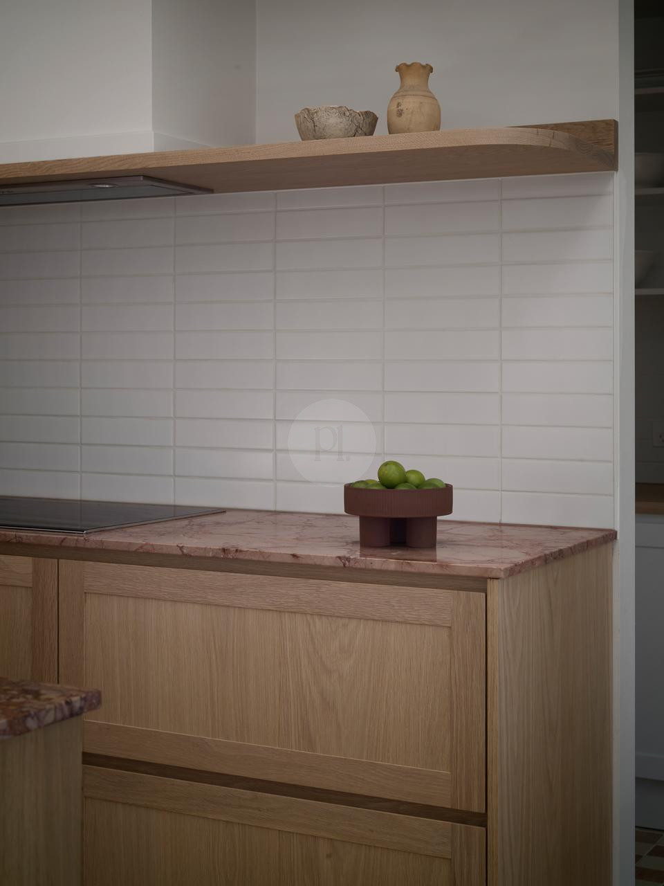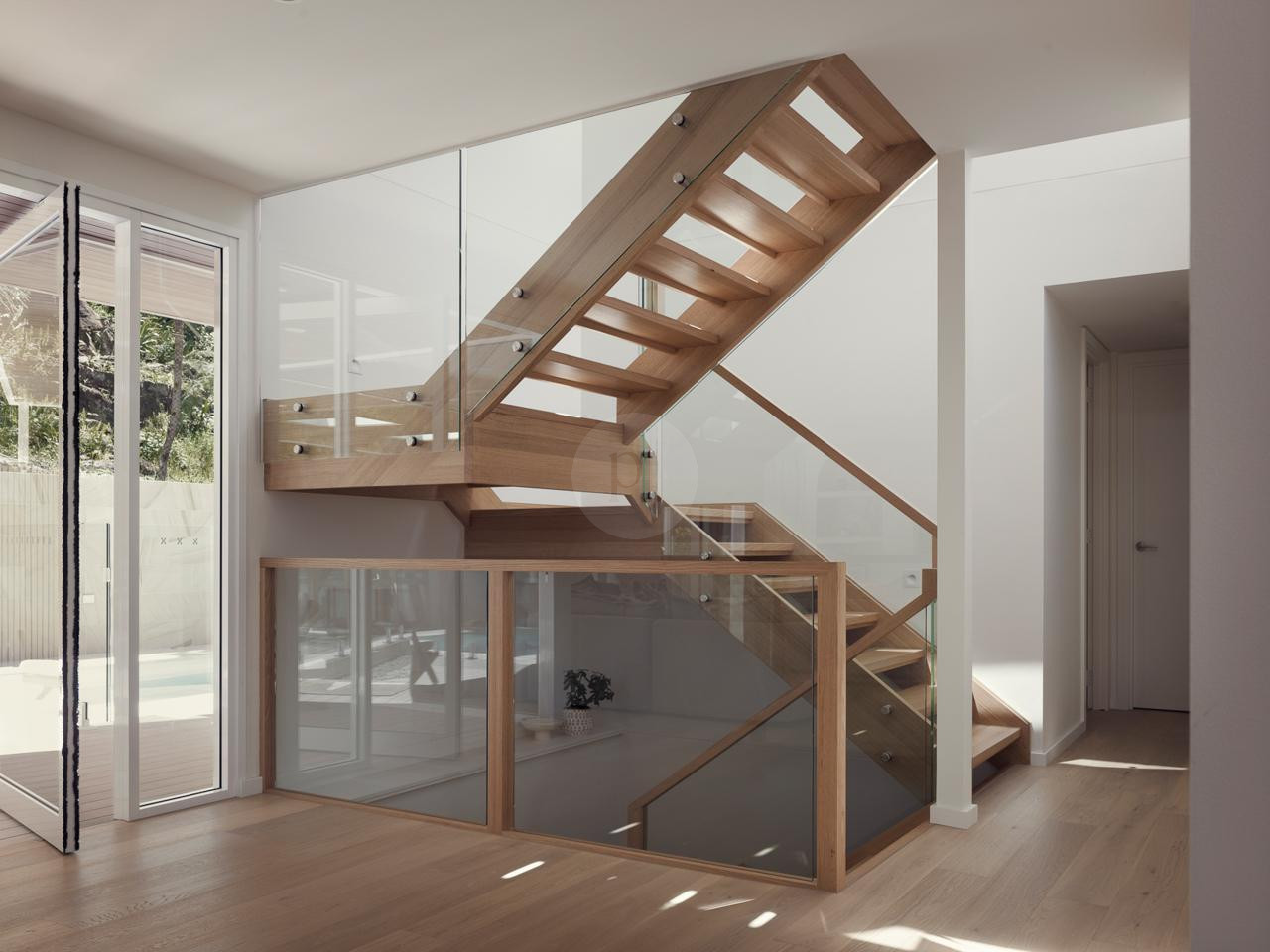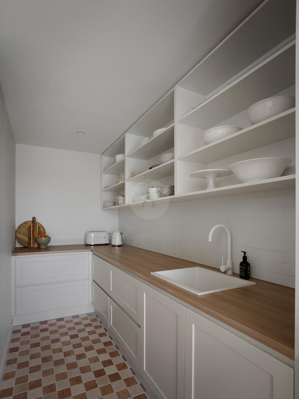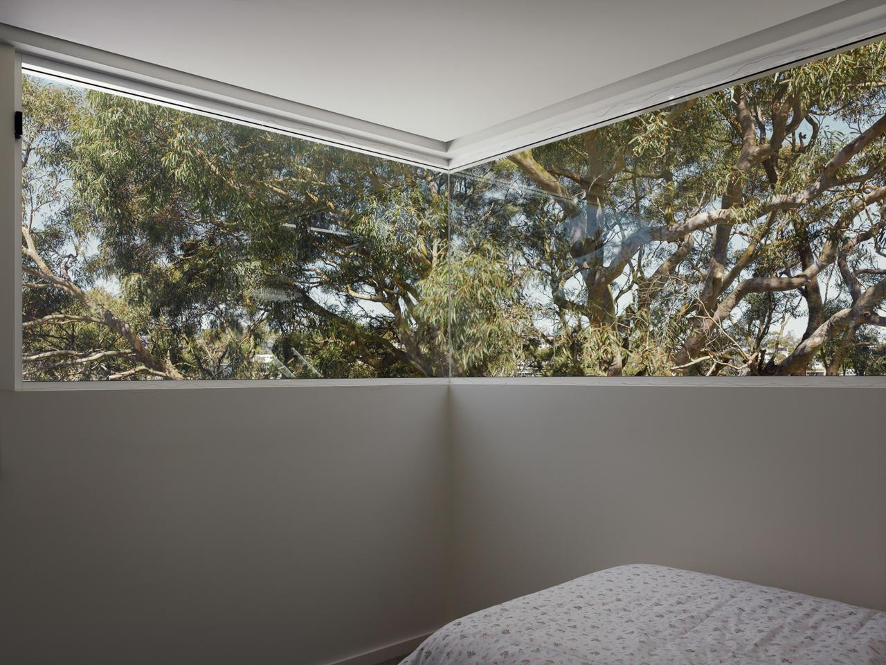 The light-filled kitchen, complete with pink marble benchtops and a practical butler’s pantry, serves as a stylish hub for lifestyle and culinary shoots. A Tasmanian Oak staircase connects all three levels, providing a striking architectural feature that photographs beautifully. Enormous windows in nearly every room frame stunning water views, while the surrounding bushland creates a serene, private atmosphere perfect for editorial, lifestyle, or commercial campaigns.