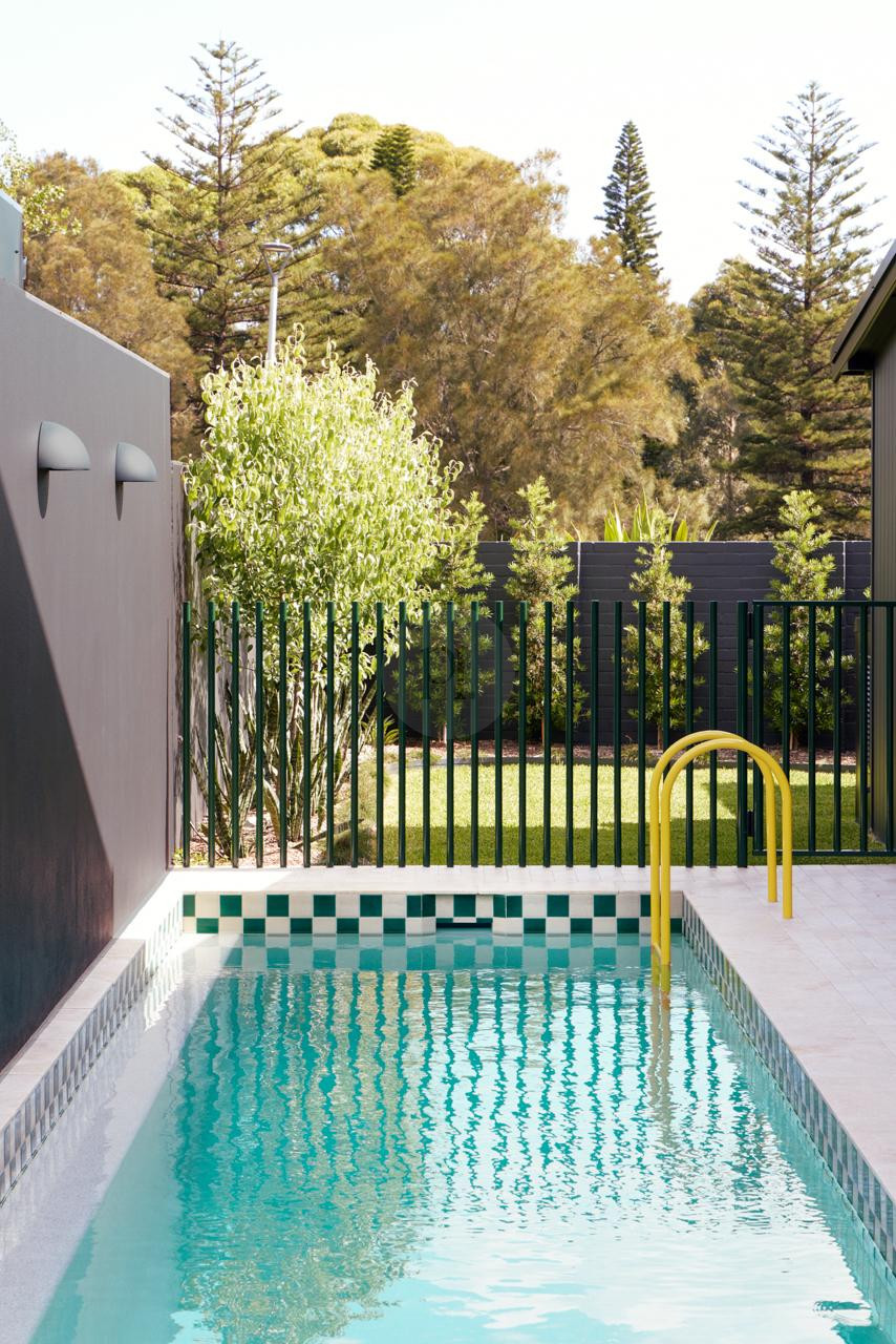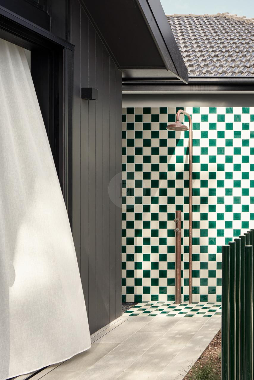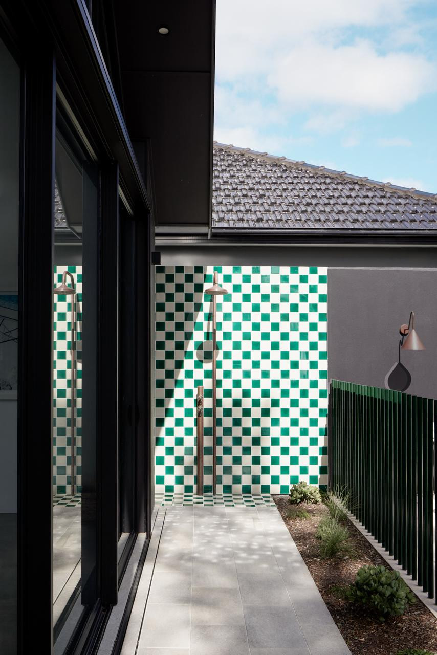 Step outside to a resort-style outdoor living area featuring a striking pool with green-and-white tiles, a pool cabana area, and a luxurious tiled outdoor shower. Landscaped gardens and a fully equipped BBQ area create multiple versatile zones perfect for alfresco entertaining or capturing stunning outdoor visuals.