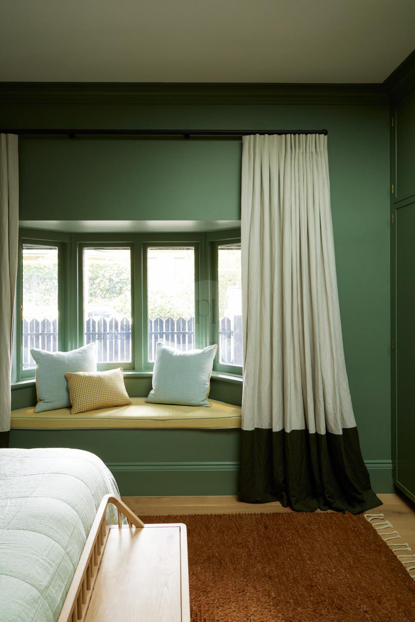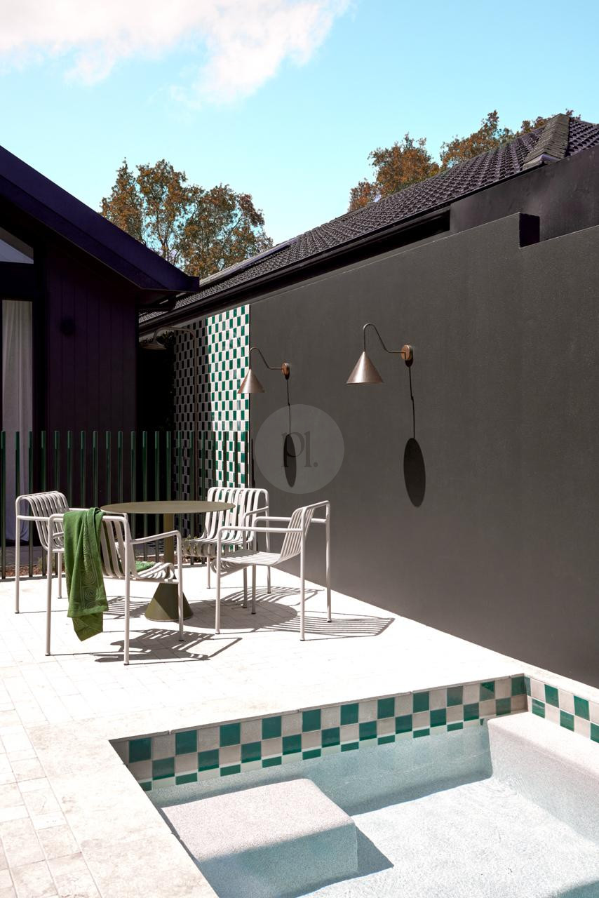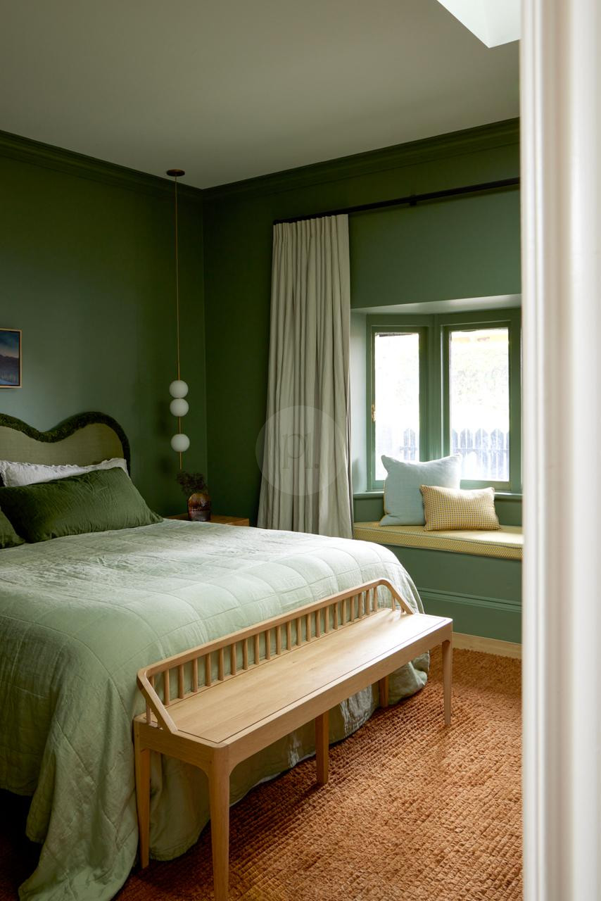 Inside, bold colour palettes create striking focal points, from the playful, colour-rich kitchen to the moody bedrooms and statement-tiled bathrooms. A cozy fireplace adds warmth and character, while the spacious living and dining areas provide flexible setups for creative productions. Every room has been thoughtfully curated to inspire storytelling, with lush greenery and contrasting dark accents giving the home a cinematic, stylish aesthetic.