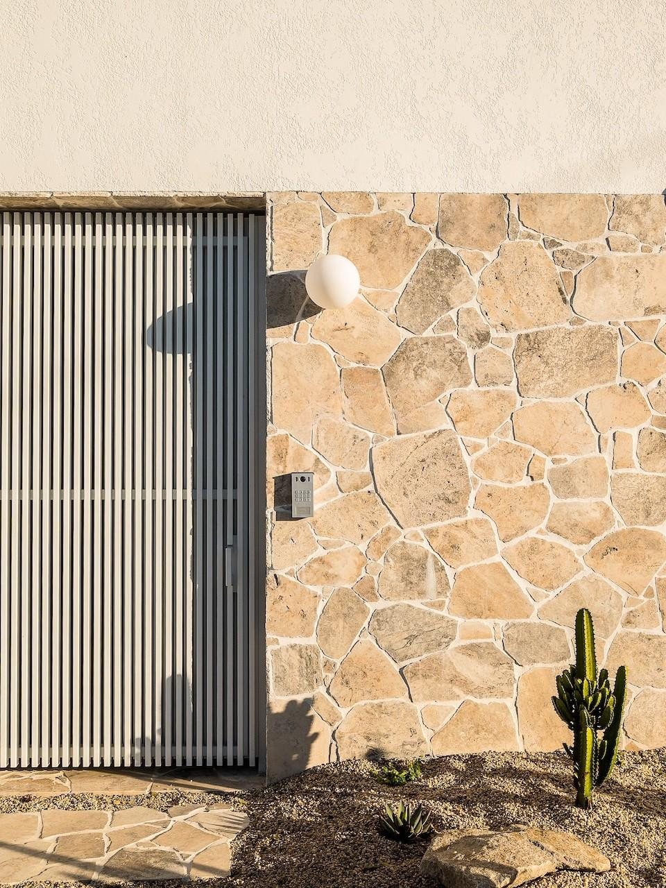 As you step inside, you are greeted with fresh interiors featuring timber and stone, creating a visually striking atmosphere with plenty of space for creativity. The double-storey design allows for ample natural light to flood the space, enhancing the minimalist aesthetic that defines this home.