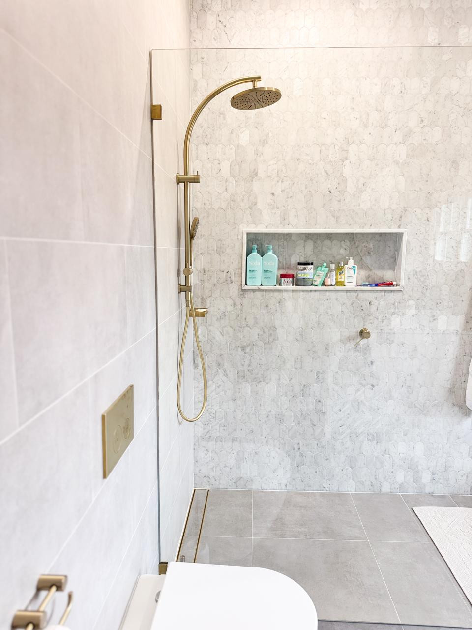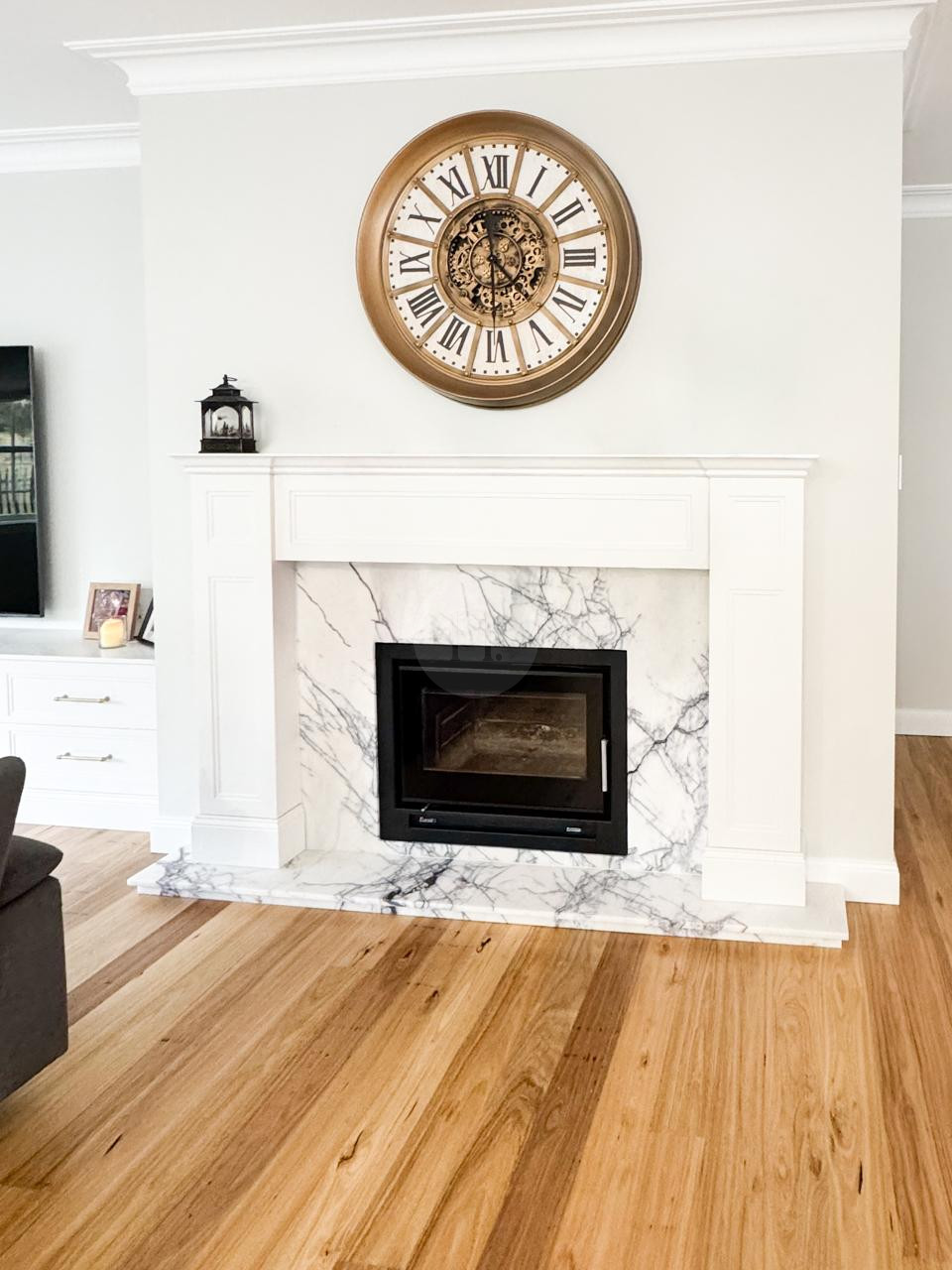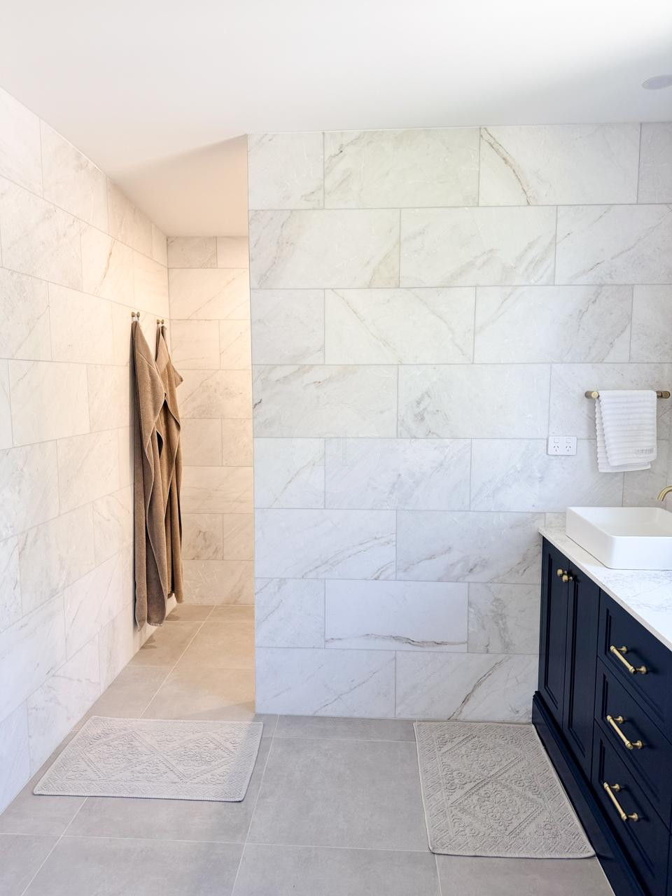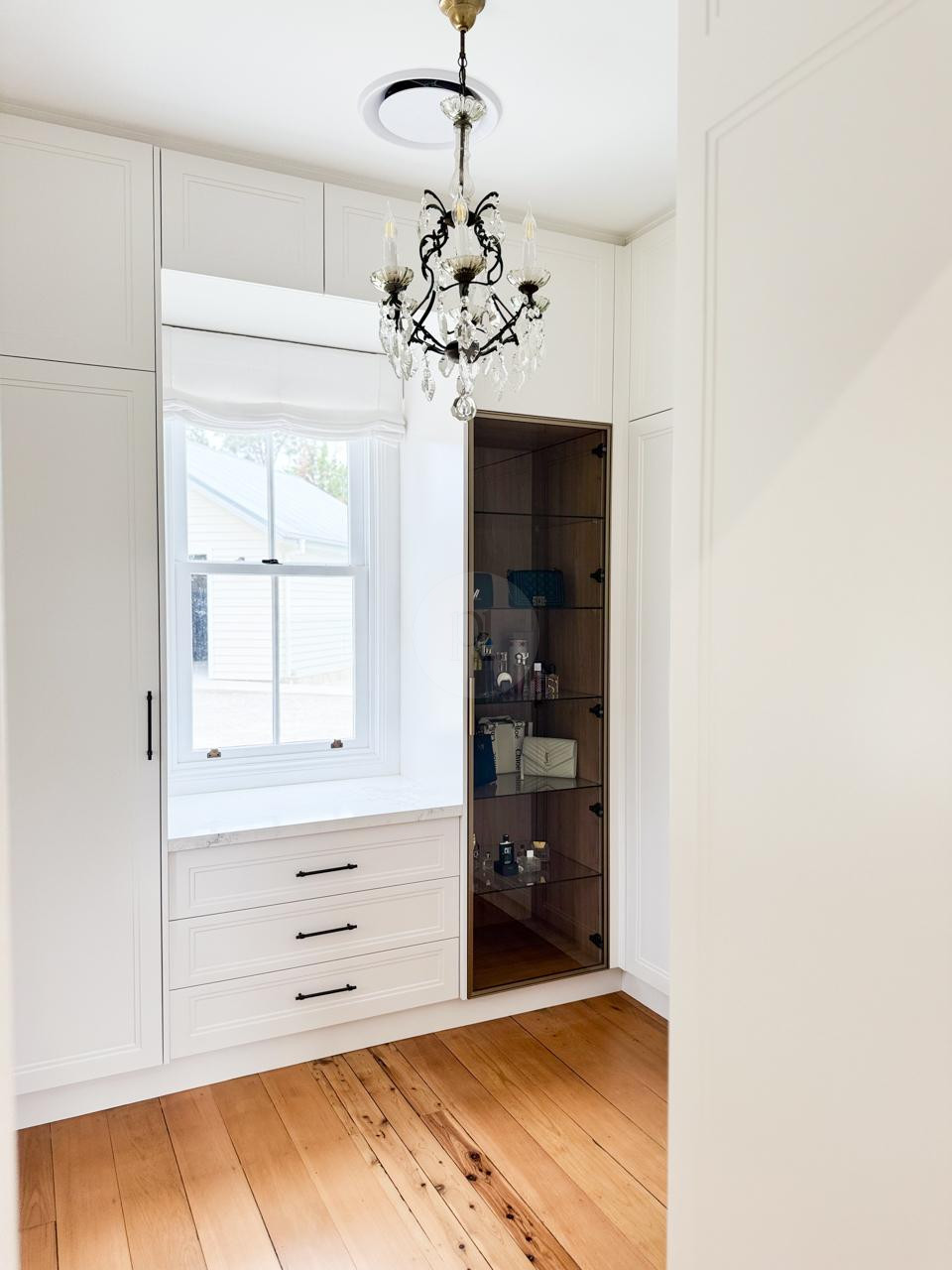 At the heart of the home is a striking, design-led kitchen featuring a sophisticated navy palette, brushed brass accents, integrated appliances, and luxurious marble benchtops. Custom cabinetry throughout the property highlights the craftsmanship and attention to detail, creating a cohesive and visually rich environment that translates beautifully on camera.