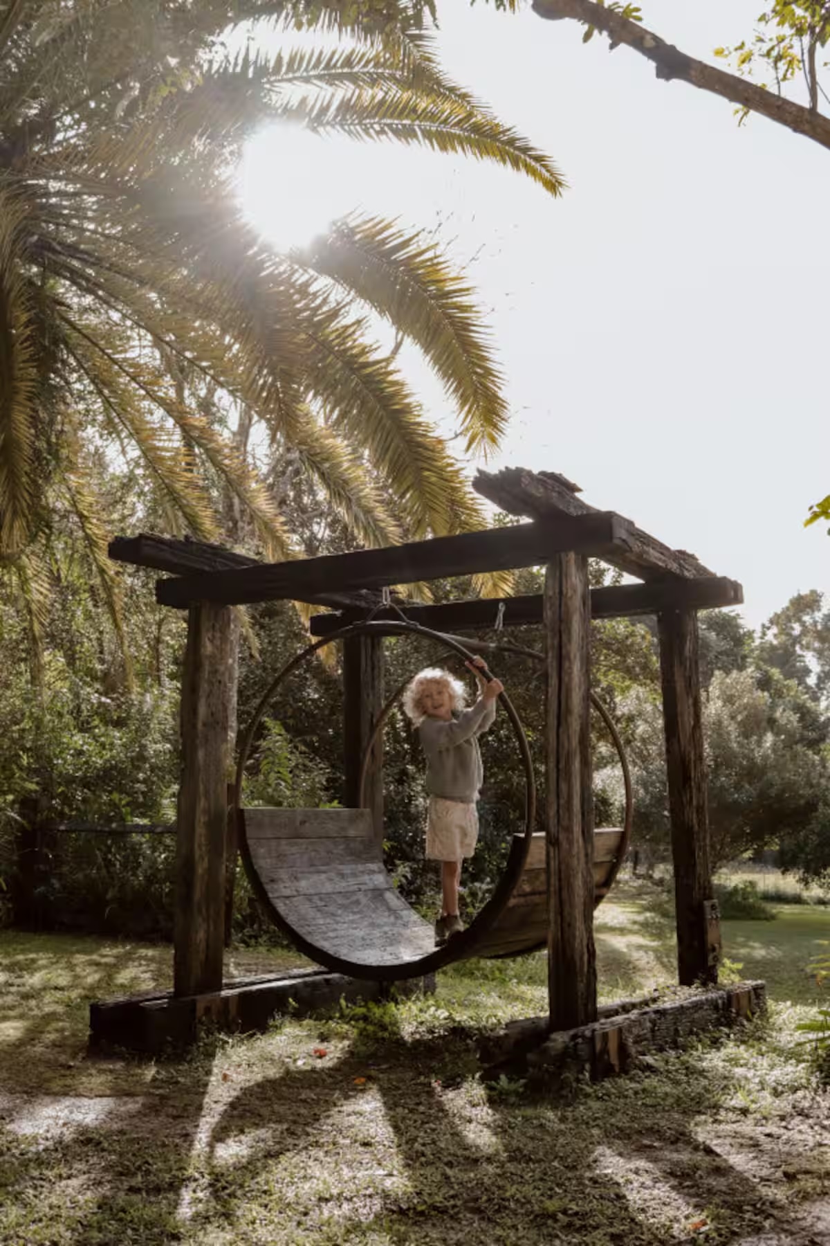 Downstairs, via the sculptural spiral staircase, the bathroom showcases a handcrafted timber vanity, a traditional clawfoot tub, and softly curved walls for the shower, blending craftsmanship with earthy, natural materials. The outdoor spaces are equally enchanting, with a generous balcony and inviting verandah offering a variety of settings for lifestyle and editorial shoots. A rustic fire pit, established gardens, expansive backyard, and vegetable patch further elevate the property’s rural appeal.