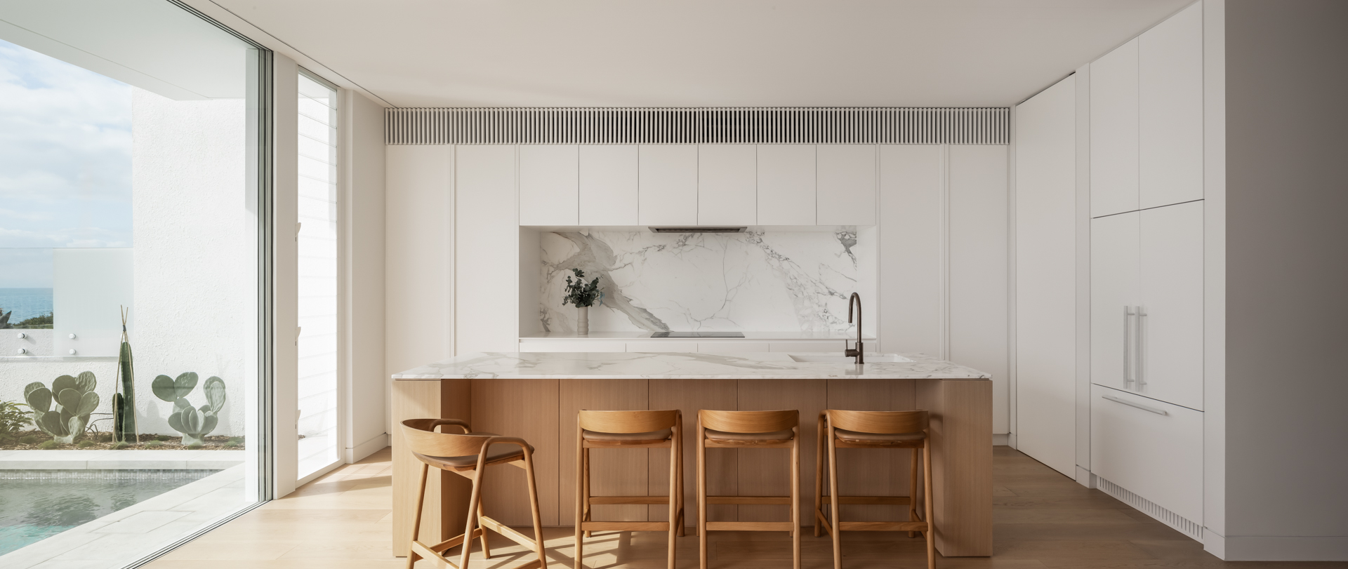 Step outside to discover a tranquil outdoor space, complete with a sparkling plunge pool and large limestone terrace that boasts undisturbed views of the ocean. The outdoor space is perfect for capturing those quintessential Australian summer vibes.