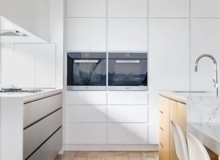 As you follow the winding timber staircase upstairs, illuminated by a skylight above, you will find 4 generously sized bedrooms and 3 bathrooms, with finishes including pink tiles in the powder room and timber framed windows in the master bedroom. It is clear that every corner of this home has been thoughtfully designed and meticulously finished – Surf Mist will easily elevate your next shoot.