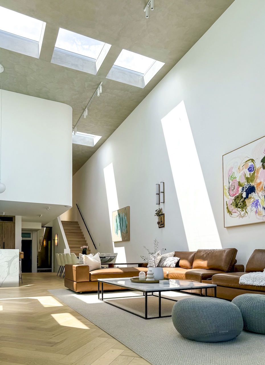 The contemporary kitchen is a true standout, featuring striking custom cabinetry, a spacious marble island bench, a wine fridge and delightful bespoke pendant lighting that further elevate the space, making it a delight for any culinary shoot. Symphony also boasts a unique curved, textured staircase, illuminated by a skylight and large steel framed, fluted glass windows that is the perfect backdrop for fashion and editorial campaigns. Upstairs you will find a stunning master suite, with more custom cabinetry that flows throughout the spacious walk-in wardrobe and ensuite.