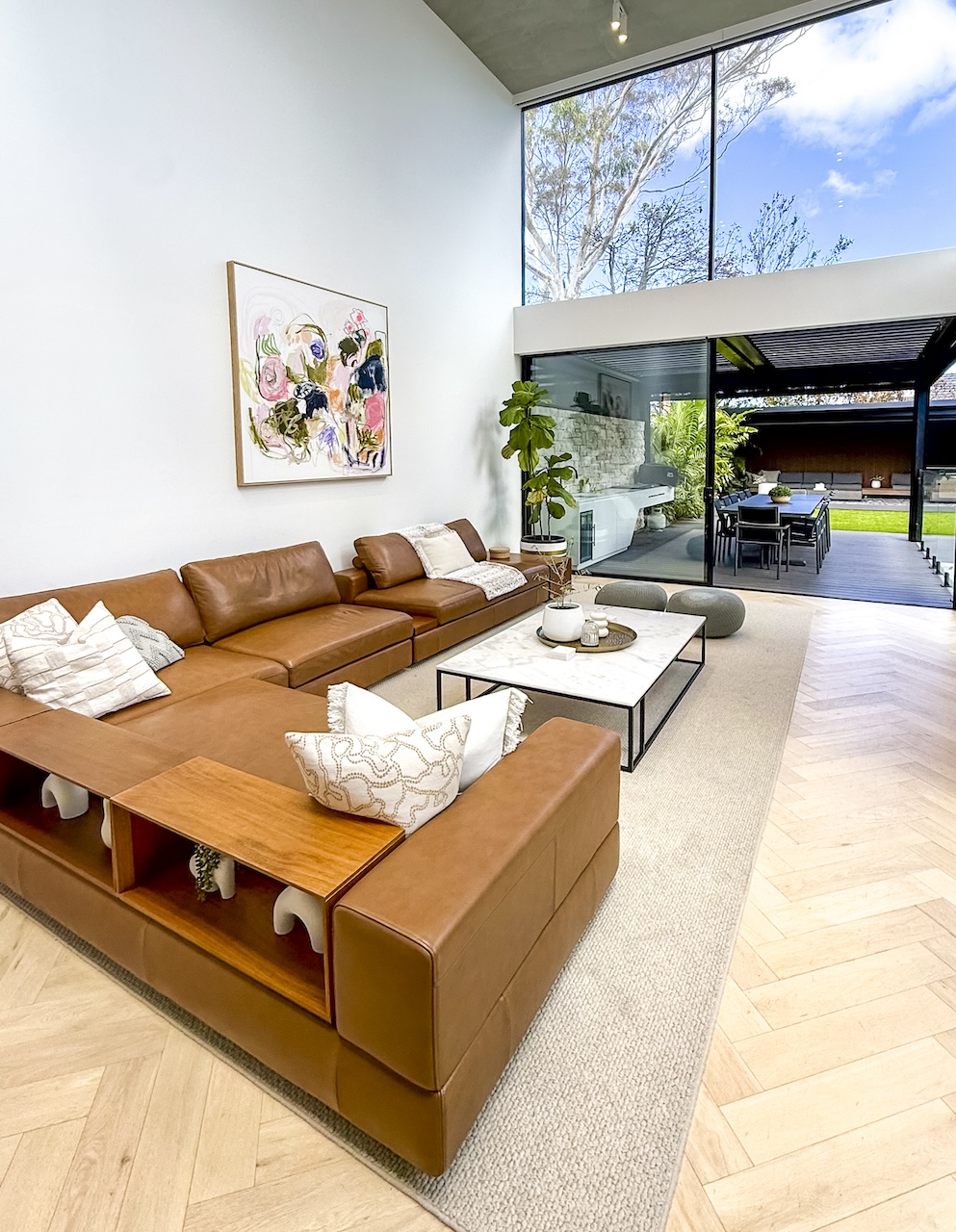 Step outside to discover a spacious, multi-area outdoor living space that is surrounded by beautifully landscaped gardens. A picturesque, modern lap pool runs alongside the main outdoor dining space that includes a BBQ area, pizza oven and wine fridge. In the second outdoor space, you will find a cosy lounge and fire pit that provides an additional backdrop for family-centred scenes.