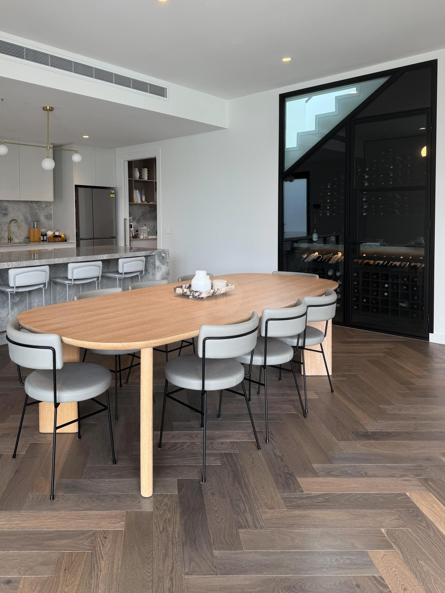 As you step inside, you are greeted by luxurious herringbone flooring that guides you through the spacious living areas, featuring soaring 3-metre ceilings that create an airy and inviting atmosphere. The sunken lounge area boasts an impressive 3.3-metre ceiling, enhancing the sense of grandeur.