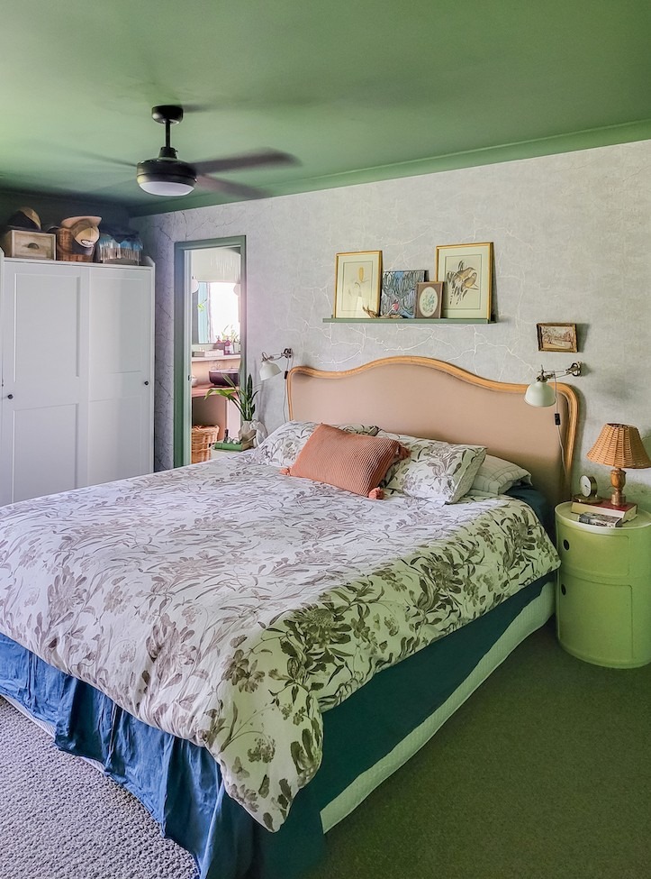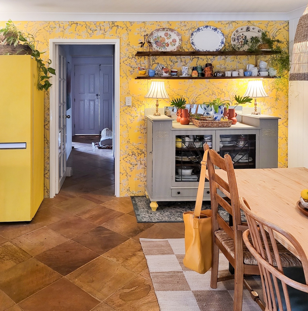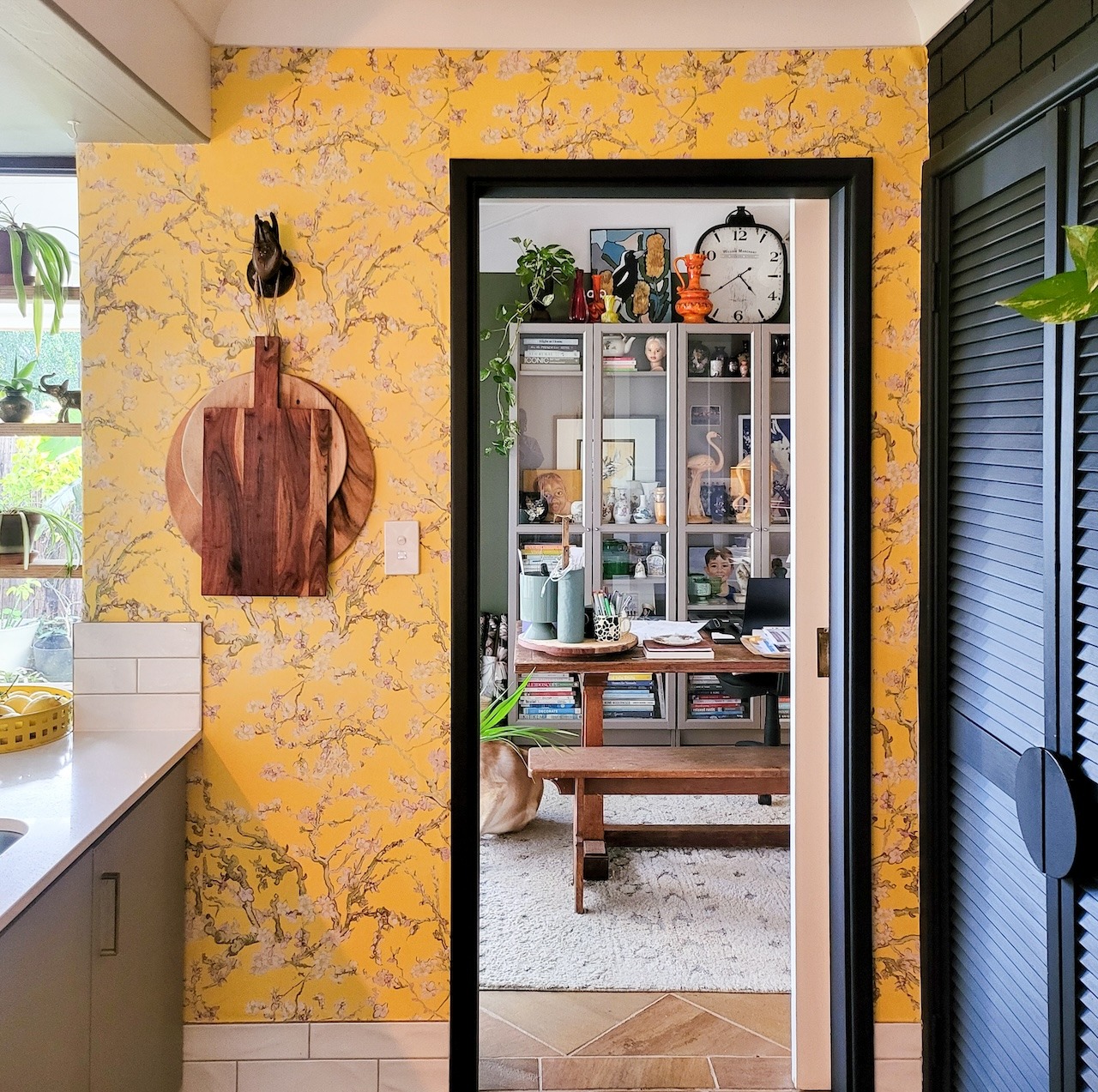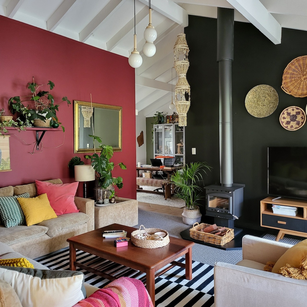 As you enter through the cheerful yellow front door, you’re greeted by a kaleidoscope of hues that create a warm and inviting atmosphere. The retro-inspired design features a stunning coloured kitchen that is sure to inspire creativity, while the charming living room boasts a cosy fireplace, perfect for capturing those intimate moments on camera.