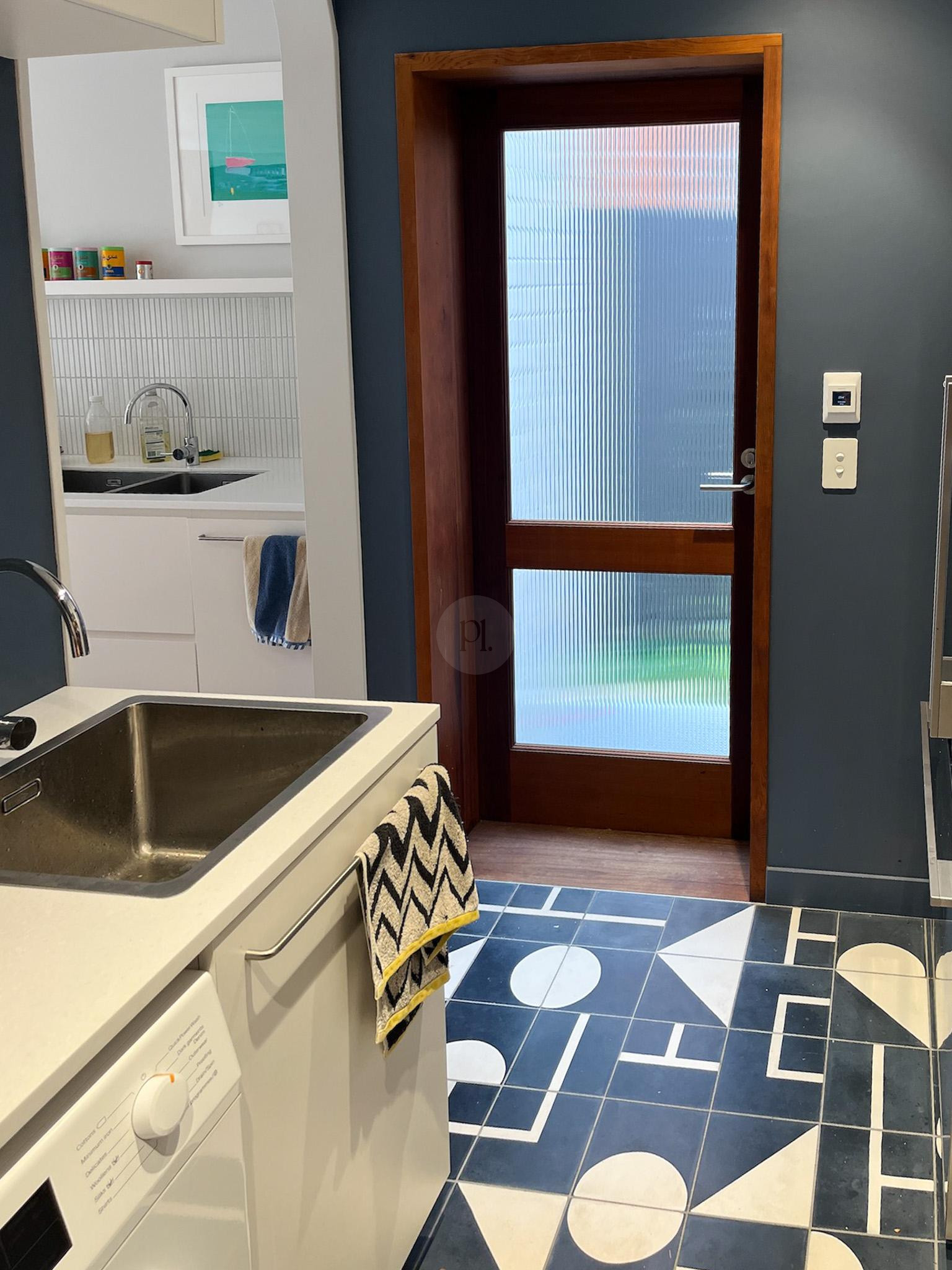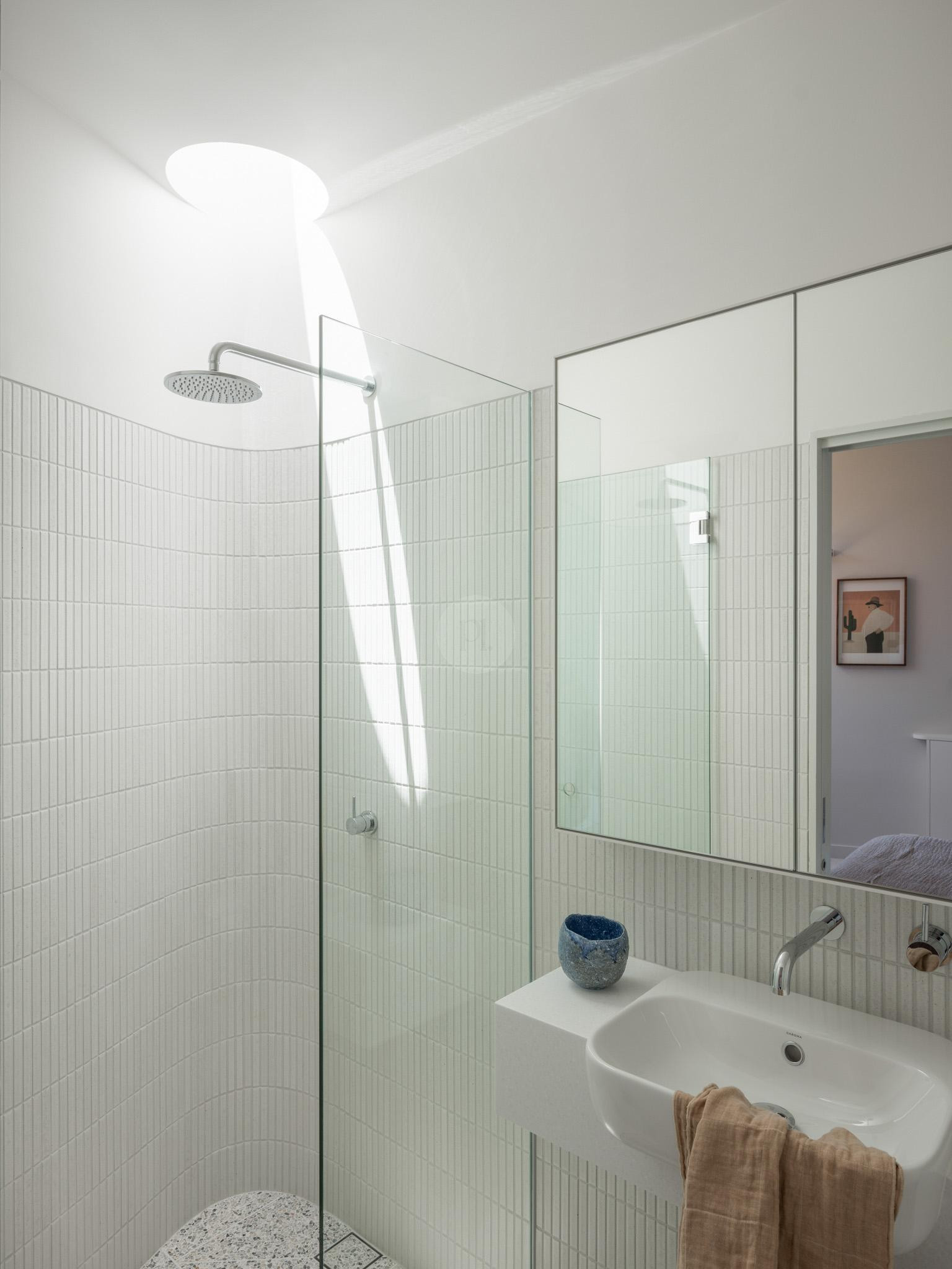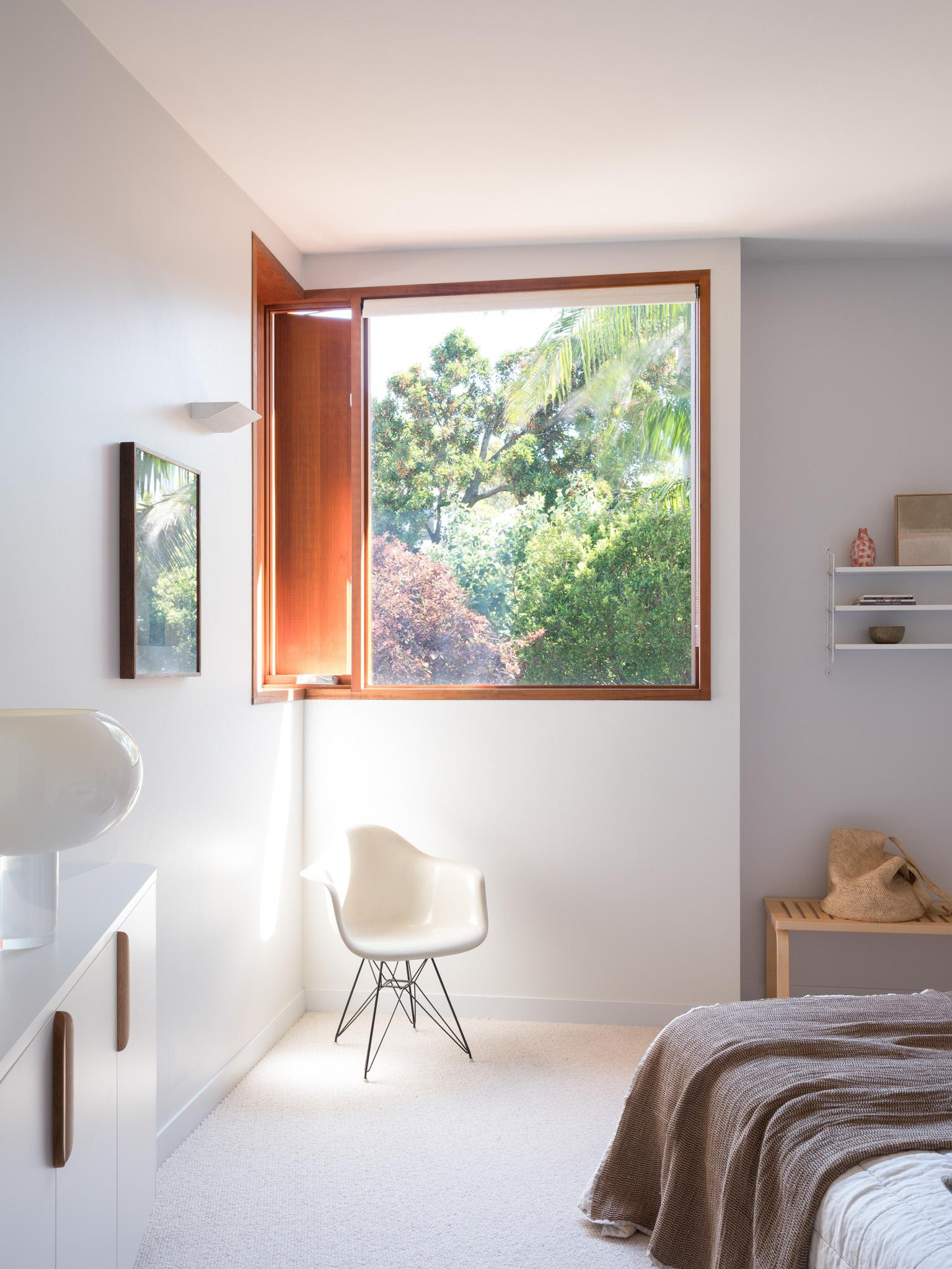 The Curve also features four beautifully appointed bedrooms and three stylish bathrooms, each thoughtfully designed with calming tones and quirky artwork that enhance the home’s character. The kitchen, with its bespoke banquette seating and custom table, is north-facing, offering a warm and inviting atmosphere.