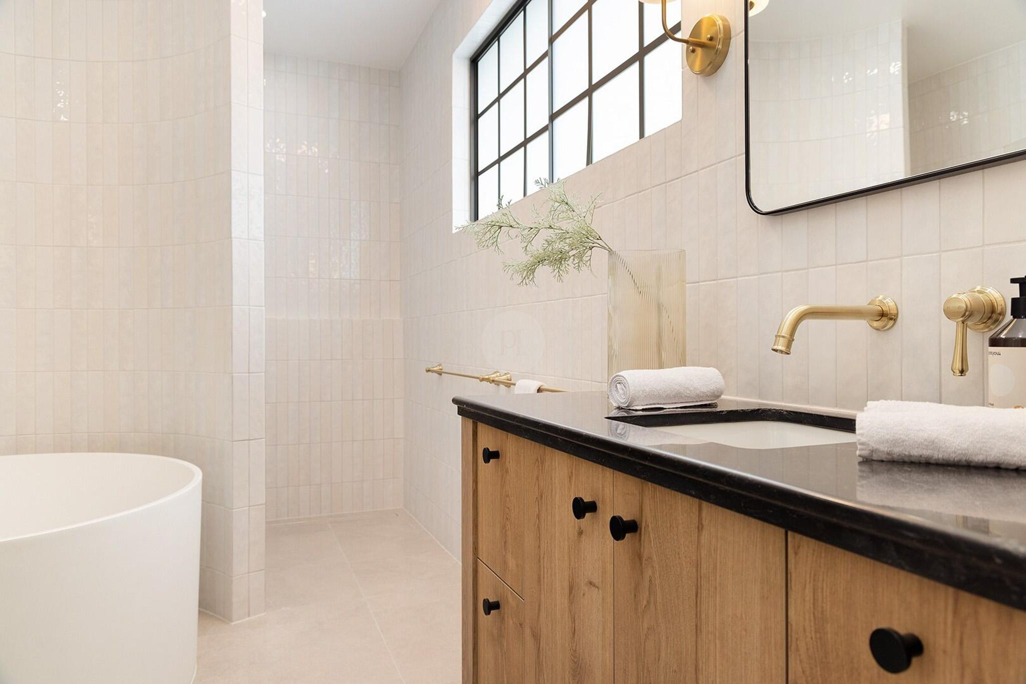 Additional highlights include a farmer’s bathtub in the upstairs bathroom, a luxurious standalone bathtub in the master ensuite, and chic golden tap ware that adds a modern flair. The outside teppanyaki grill/bar and checkerboard tiles in the mudroom and pantry areas further enhance the property’s unique charm.