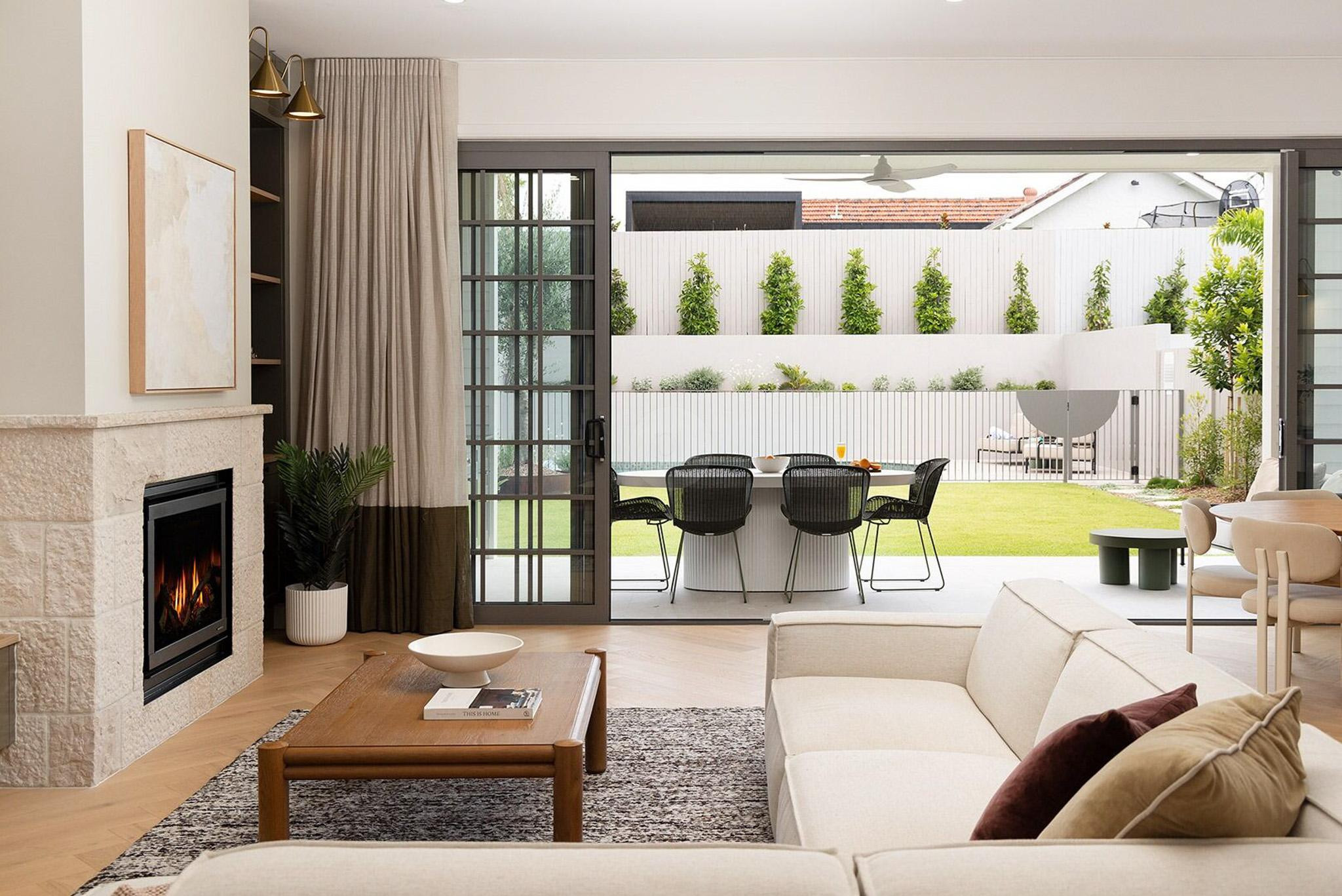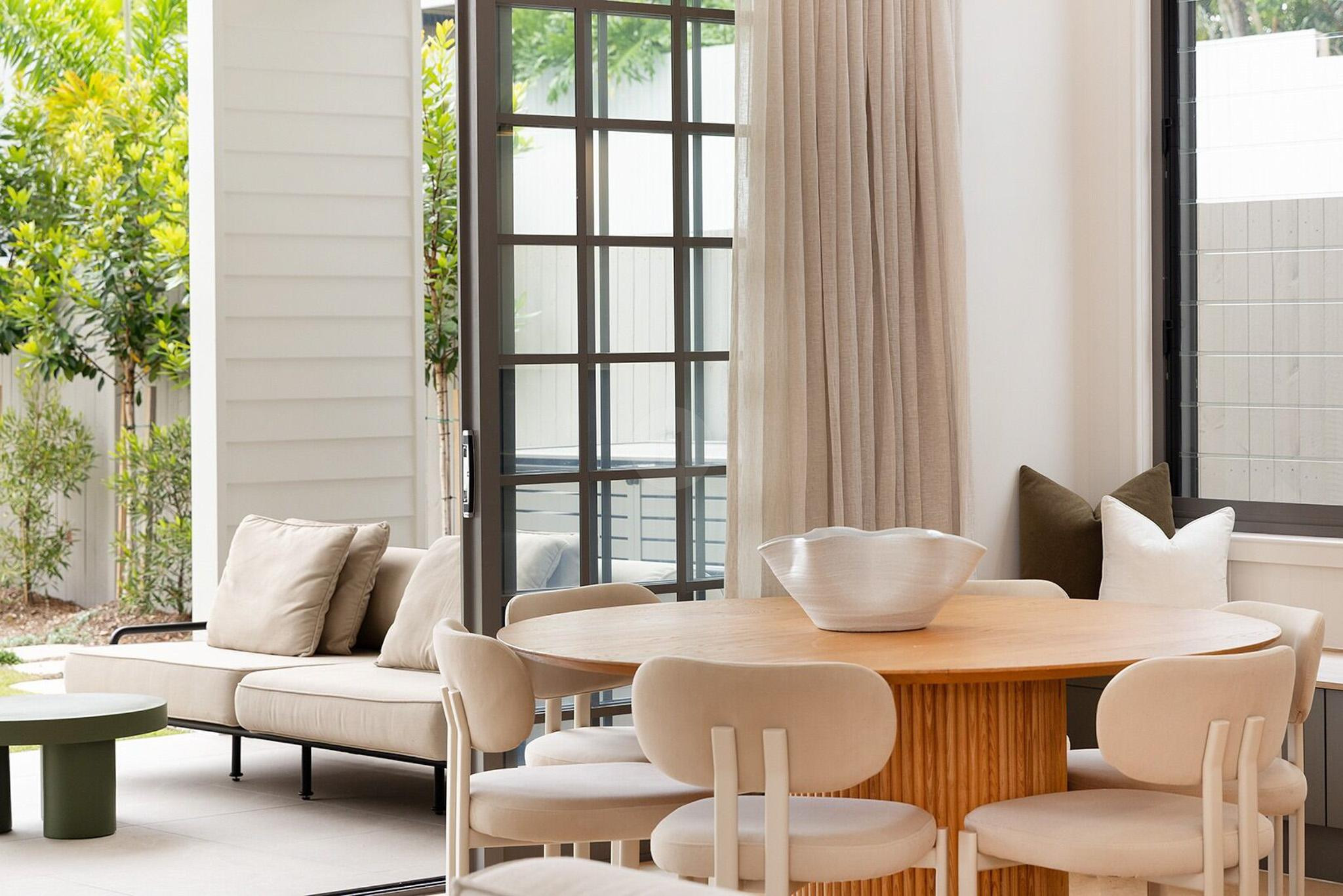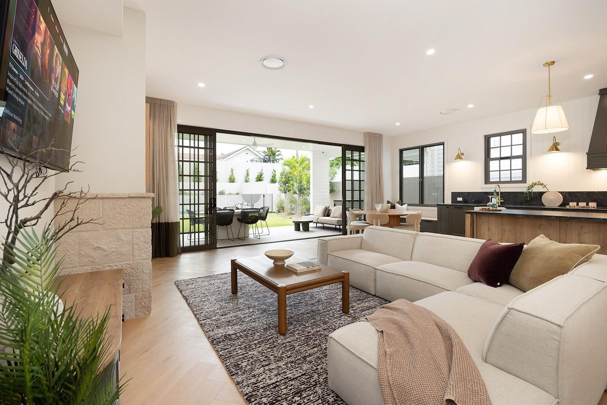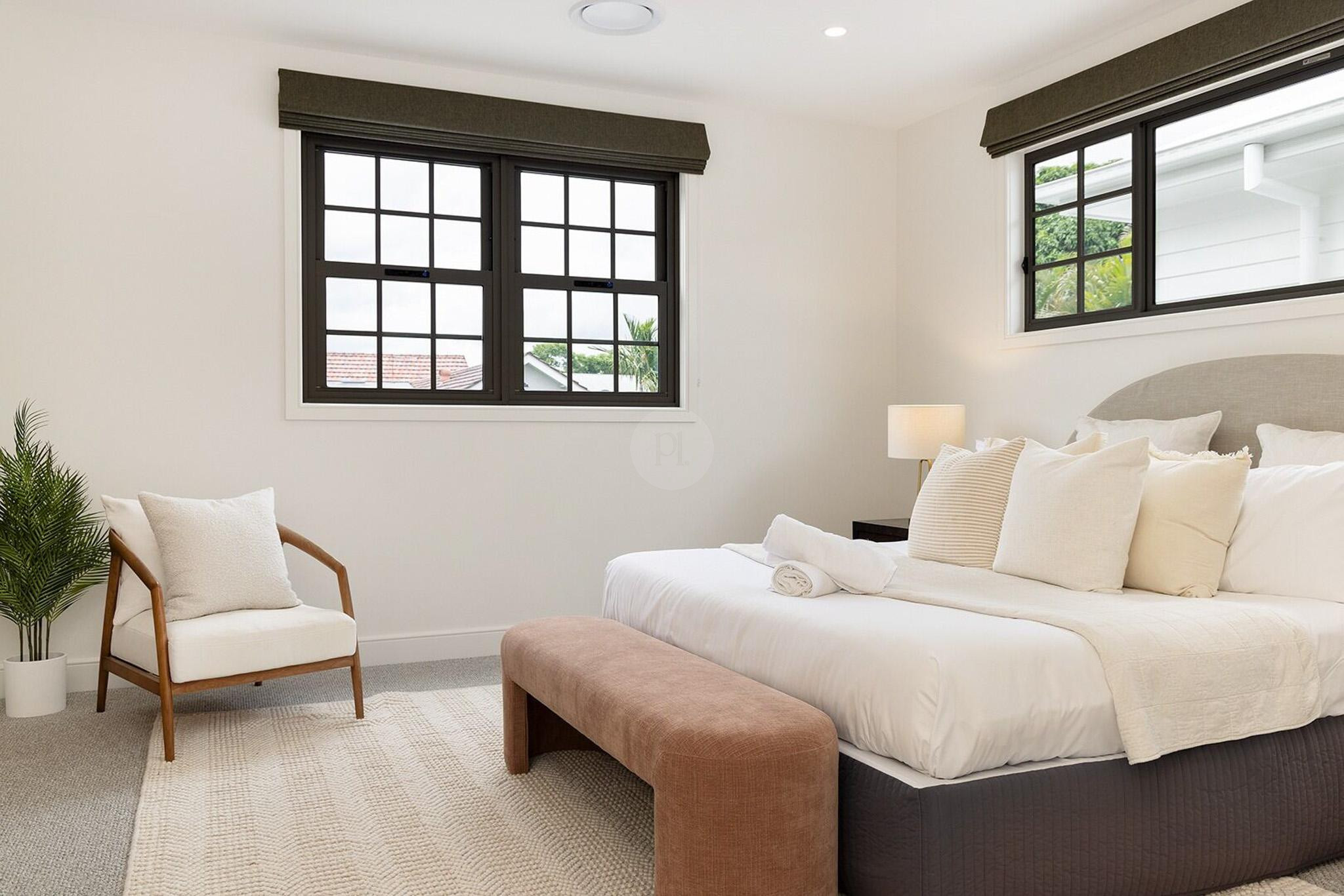 The property is adorned with established gardens, providing a lush and inviting atmosphere. The outdoor living spaces are complemented by a stylish courtyard, offering a serene setting for any shoot. Inside, the home is flooded with natural light, enhancing the herringbone flooring that flows throughout the space.