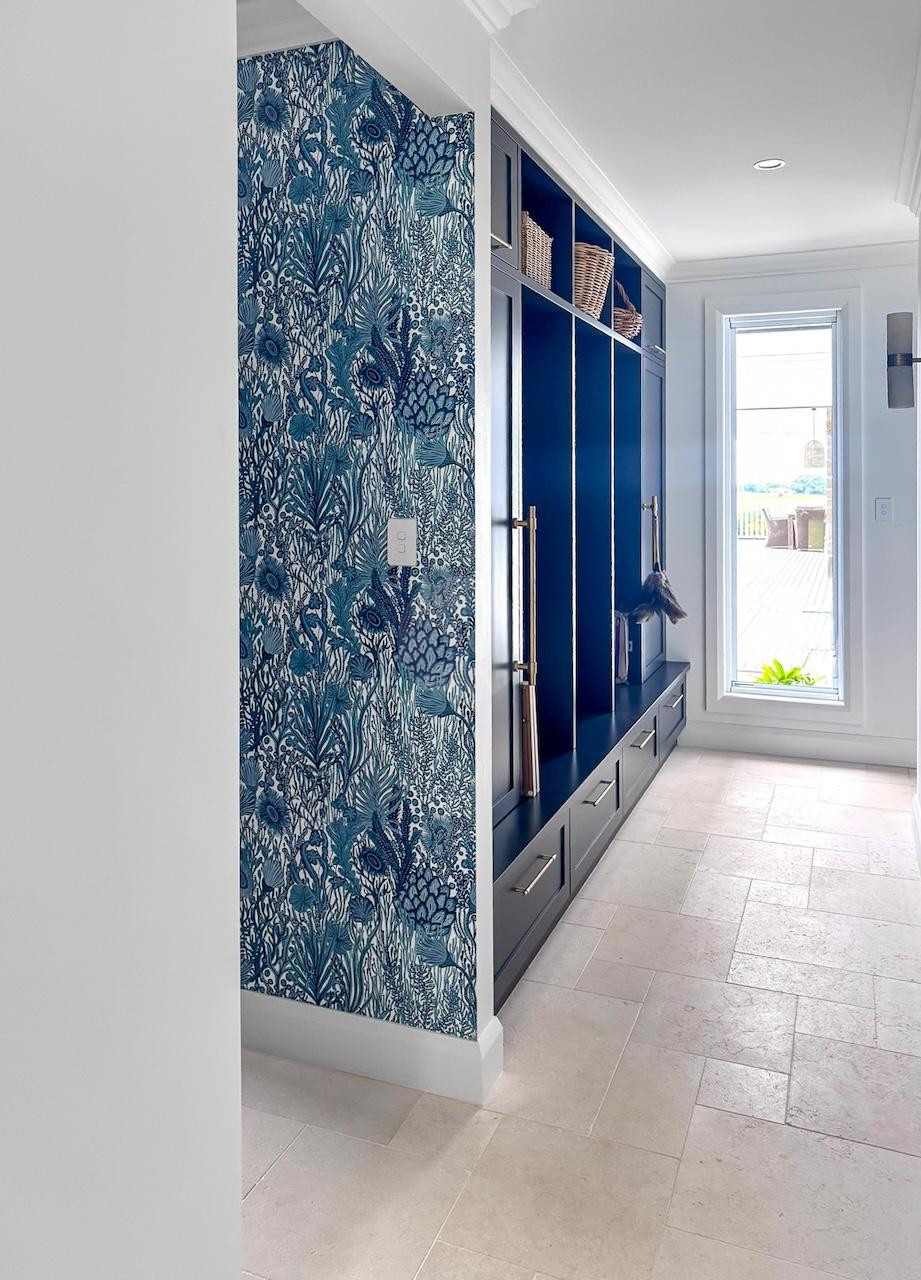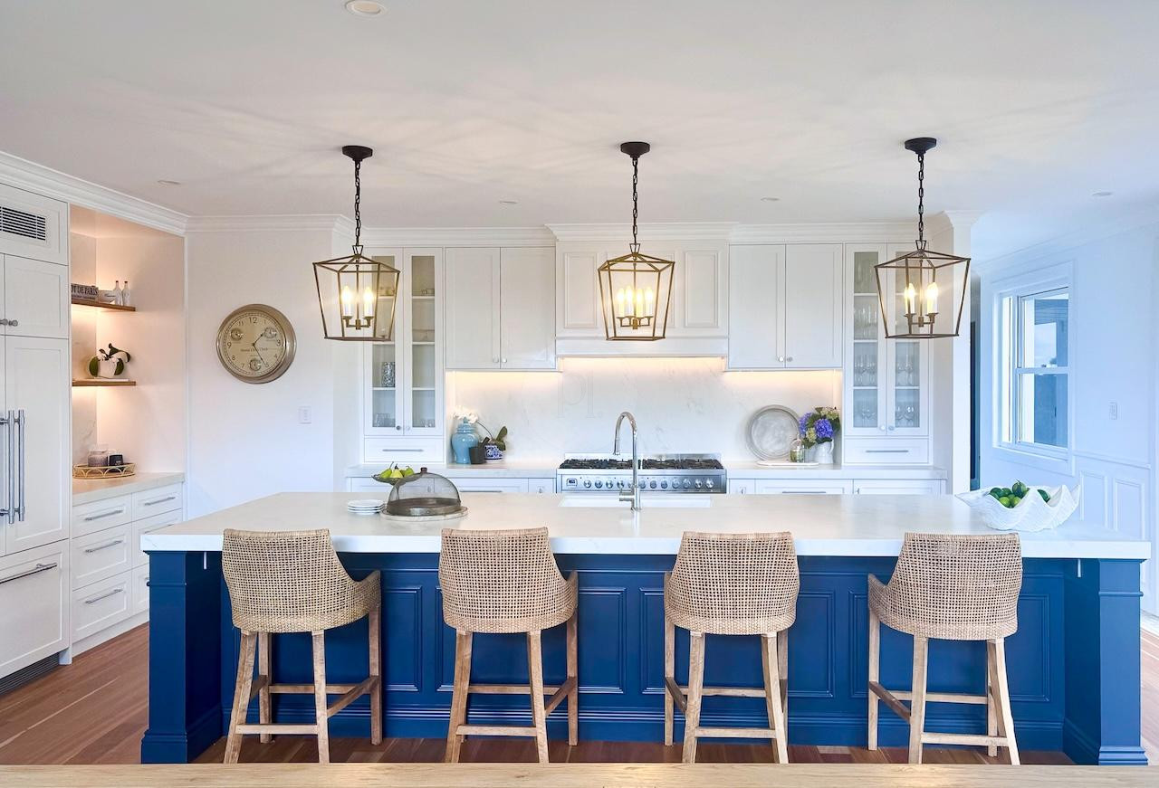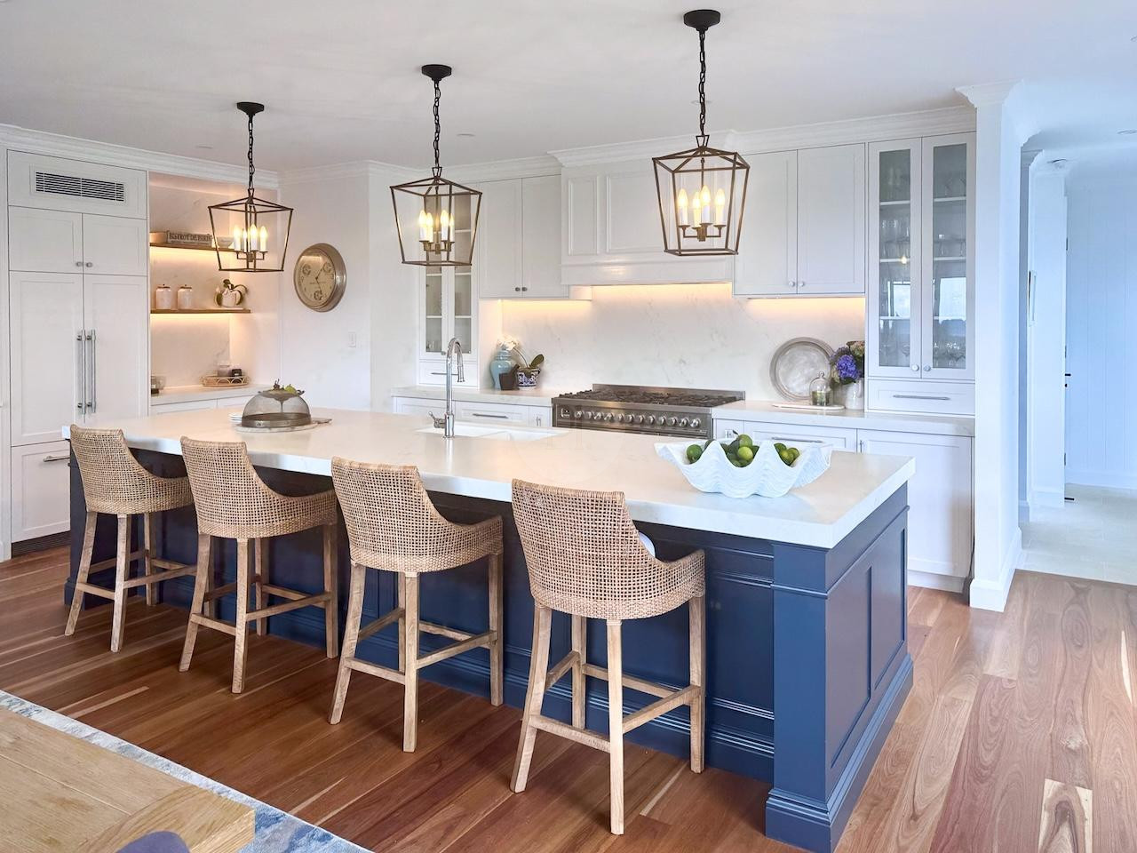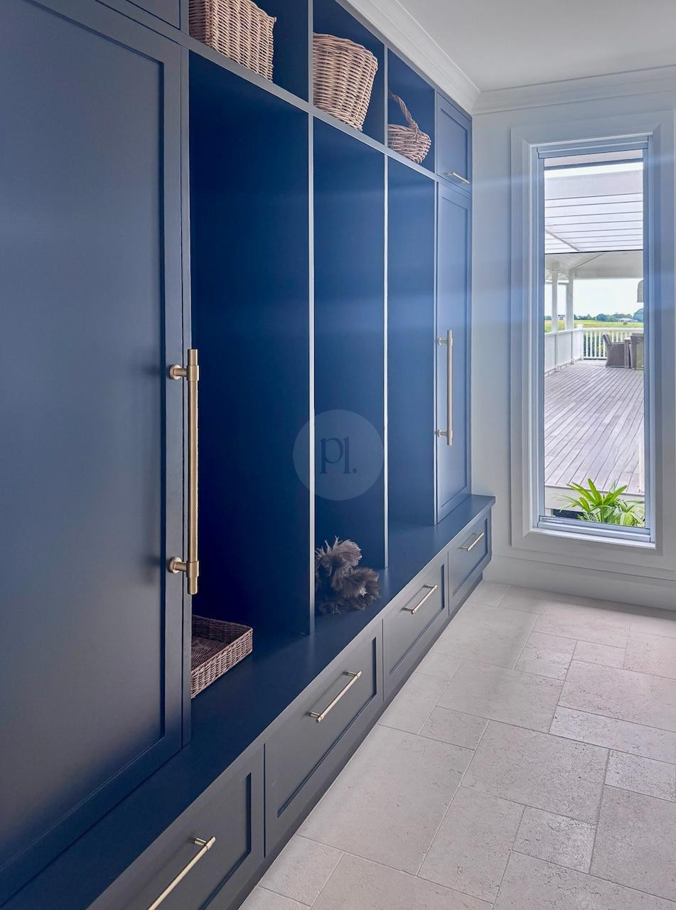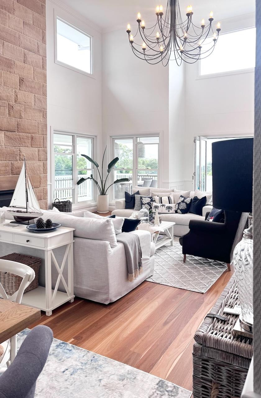 Inside, The Vow showcases classic Hamptons styling with modern touches. The white and navy kitchen serves as the centre of the home, and adjoins a spacious living room with soaring ceilings and an inviting stone-clad fireplace. The main living zone also boasts a large staircase and mezzanine level, perfect for production crews seeking wider angles for their furniture or product shoot, while the homes north-easterly aspect floods the interior with natural light, enhancing photography and filming conditions.