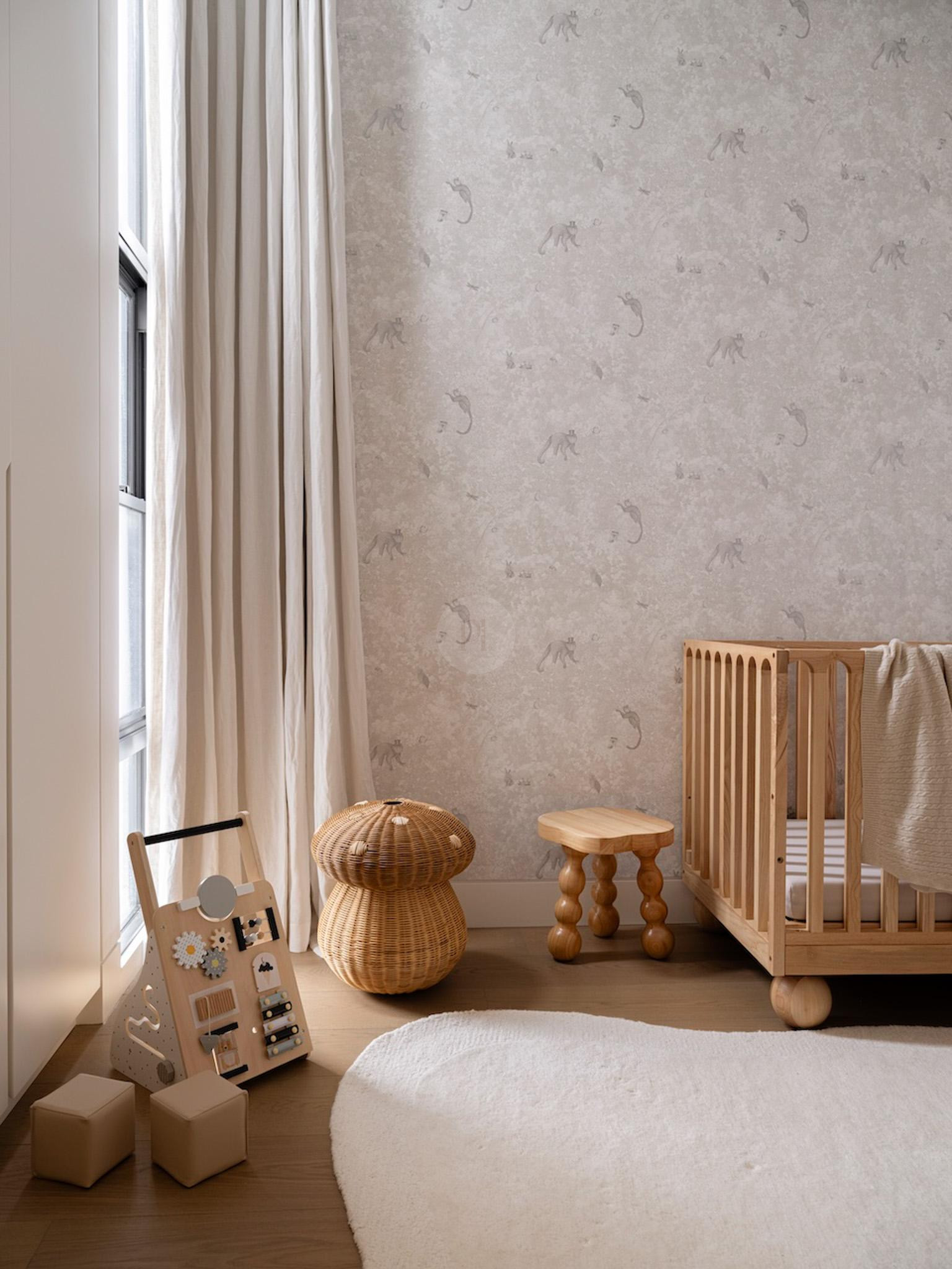 Upstairs, you will find sophisticated bedrooms that serve as serene personal retreats, offering a unique perspective for your creative projects. The beautifully wallpapered nursery adds a touch of vintage charm, perfect for capturing heartwarming scenes. The kitchen, designed for durability and ease, features natural stone and rich timbers, providing a stylish yet functional space for any culinary-themed shoot.