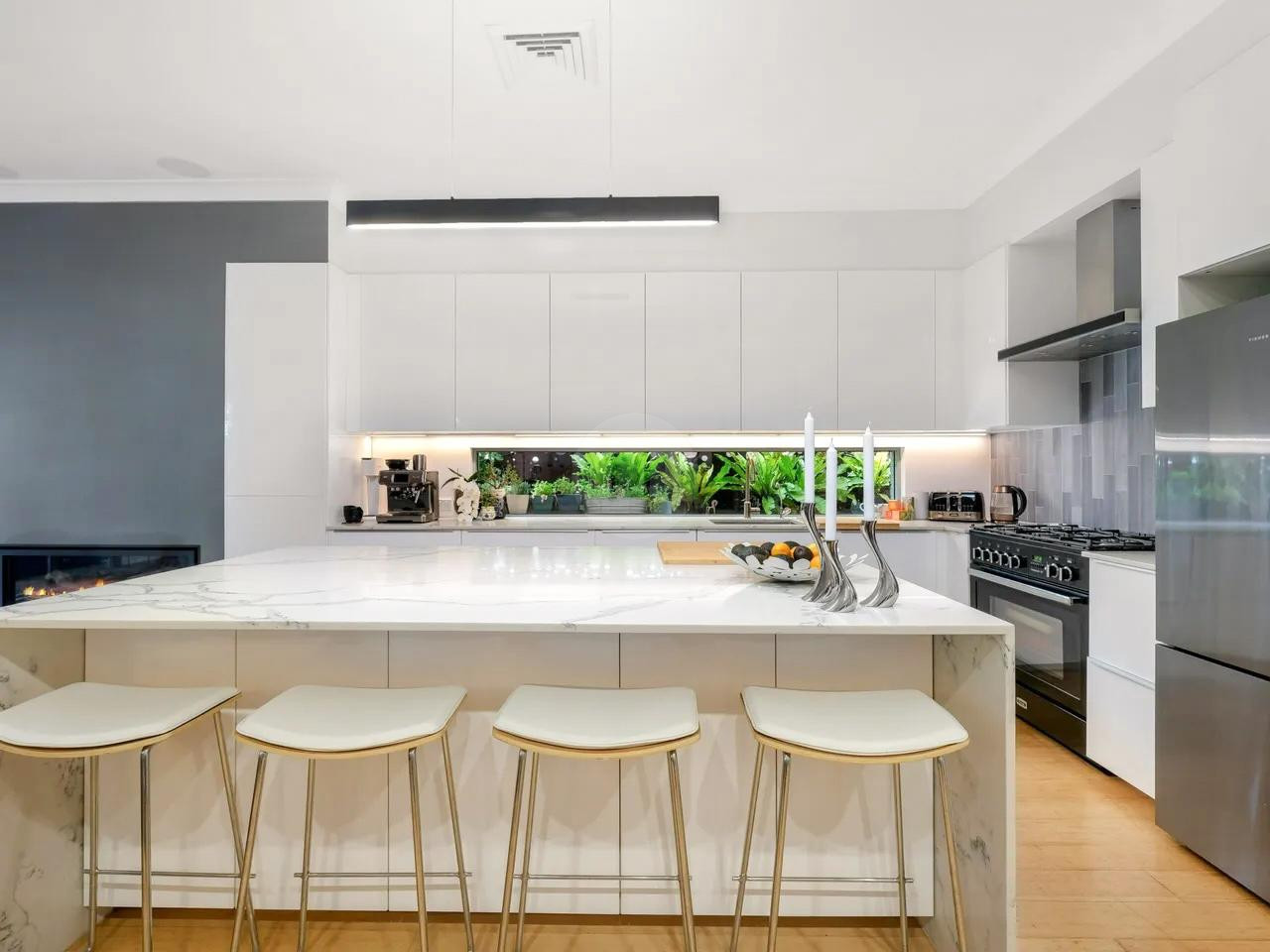 Balancing heritage charm with contemporary living, Timberleaf opens to a generous modern extension at the rear of the home. Here, a sleek, light-filled kitchen with modern appliances anchors an open-plan living space, complete with a cosy gas fireplace and seamless flow to a covered outdoor entertaining area overlooking the garden. The transition between indoor and outdoor spaces offers flexibility and depth for filming, lifestyle shoots and editorial productions.