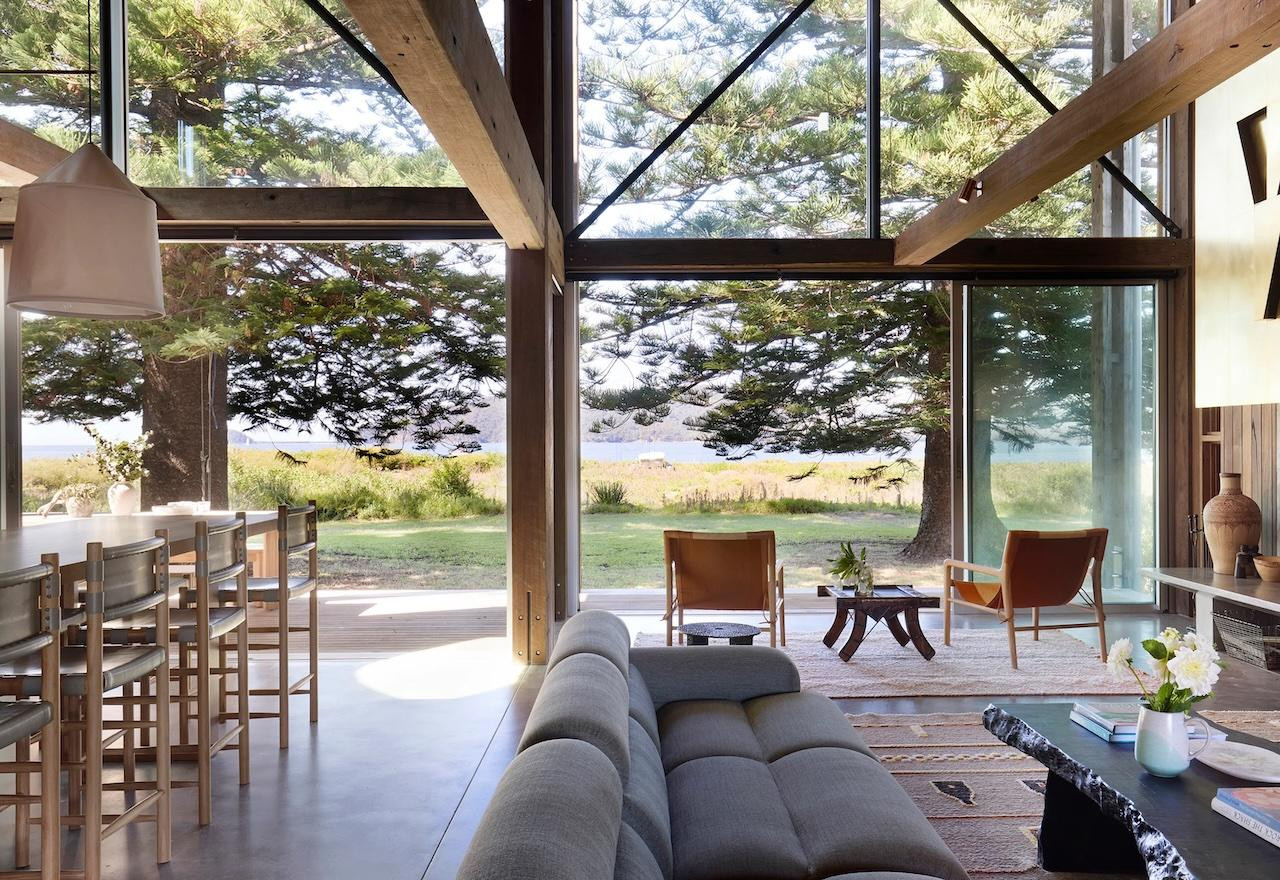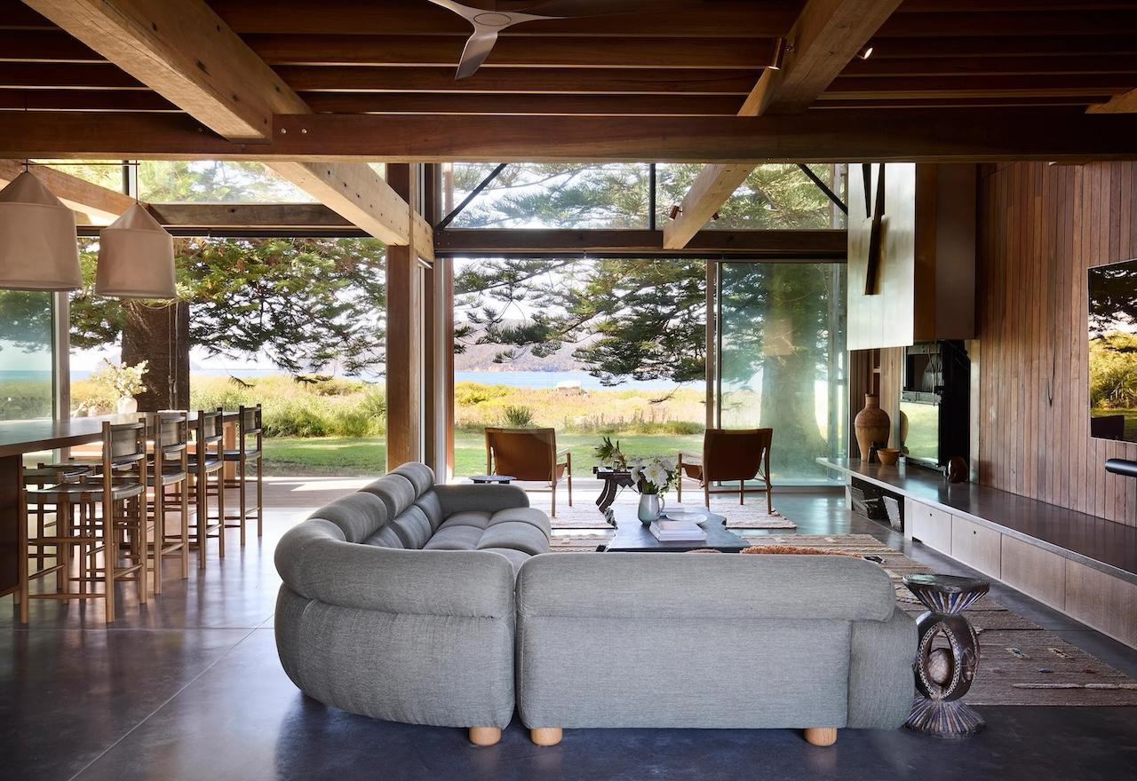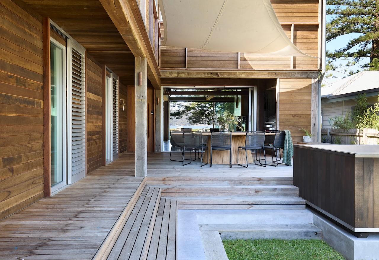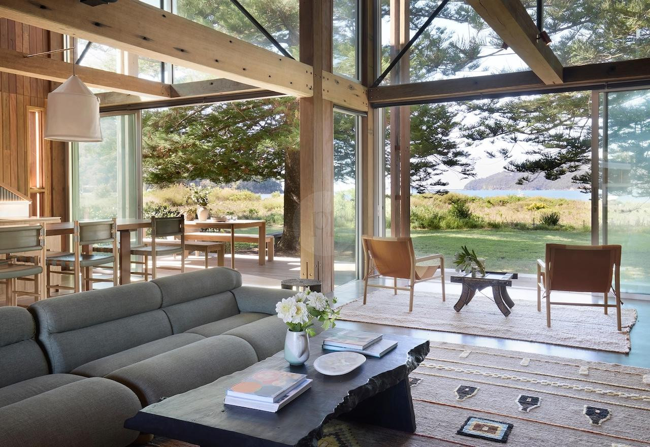 Discover the serene beauty of Timekeeper, a stunning property nestled at the mouth of the Hawkesbury River, where the golden dunes meet the sparkling sea. This contemporary yet rustic retreat harmoniously blends with the iconic weatherboard cottages and majestic Norfolk pines of Patonga, creating an inviting atmosphere that feels like home.