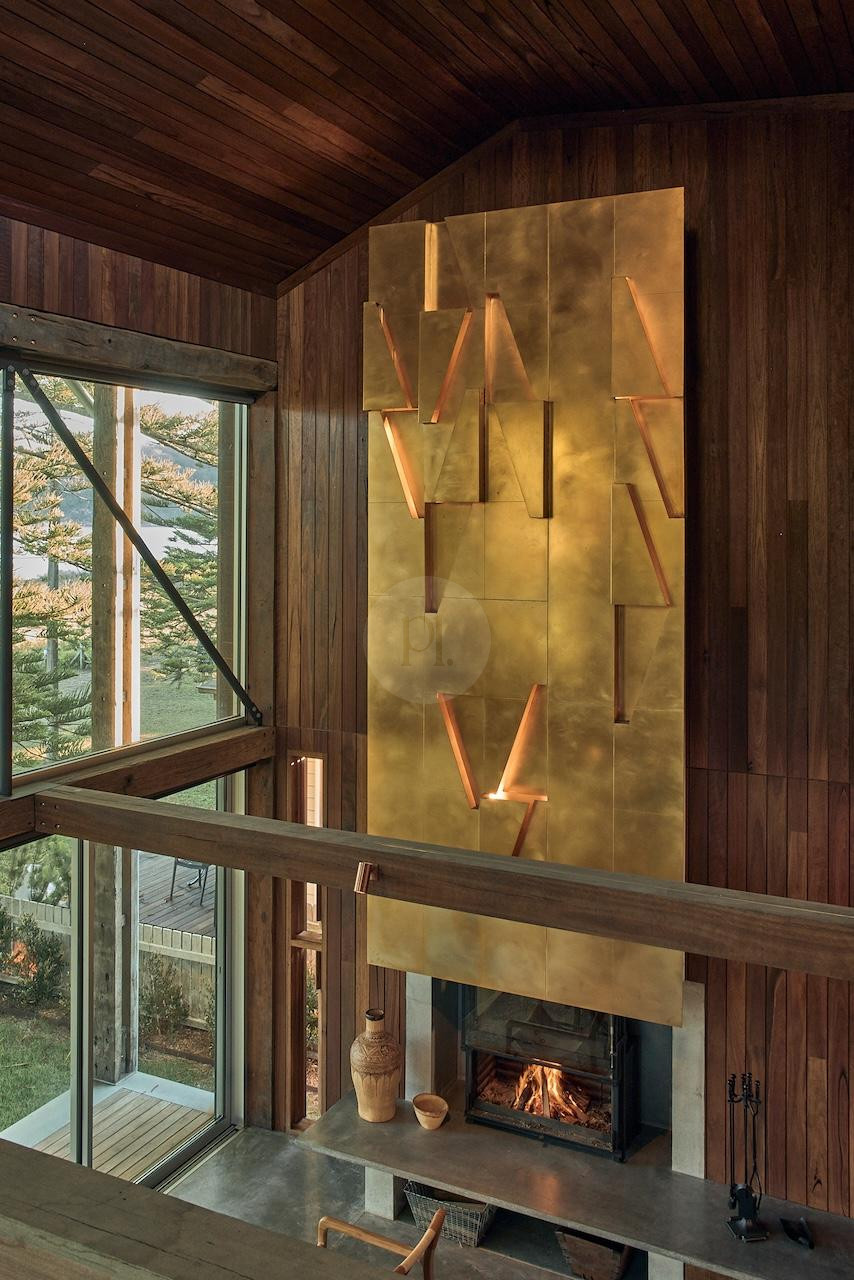 Step inside to experience warm, generous spaces. The double-height living room captures the western light, while the unique oval “timekeeper” window casts enchanting patterns across the walls. A striking brass fireplace screen serves as a focal point, blending functionality with artistic elegance, anchoring the room in style. Above the impressive fireplace is an internal balcony – ideal for capturing the living room from a bird’s eye view.