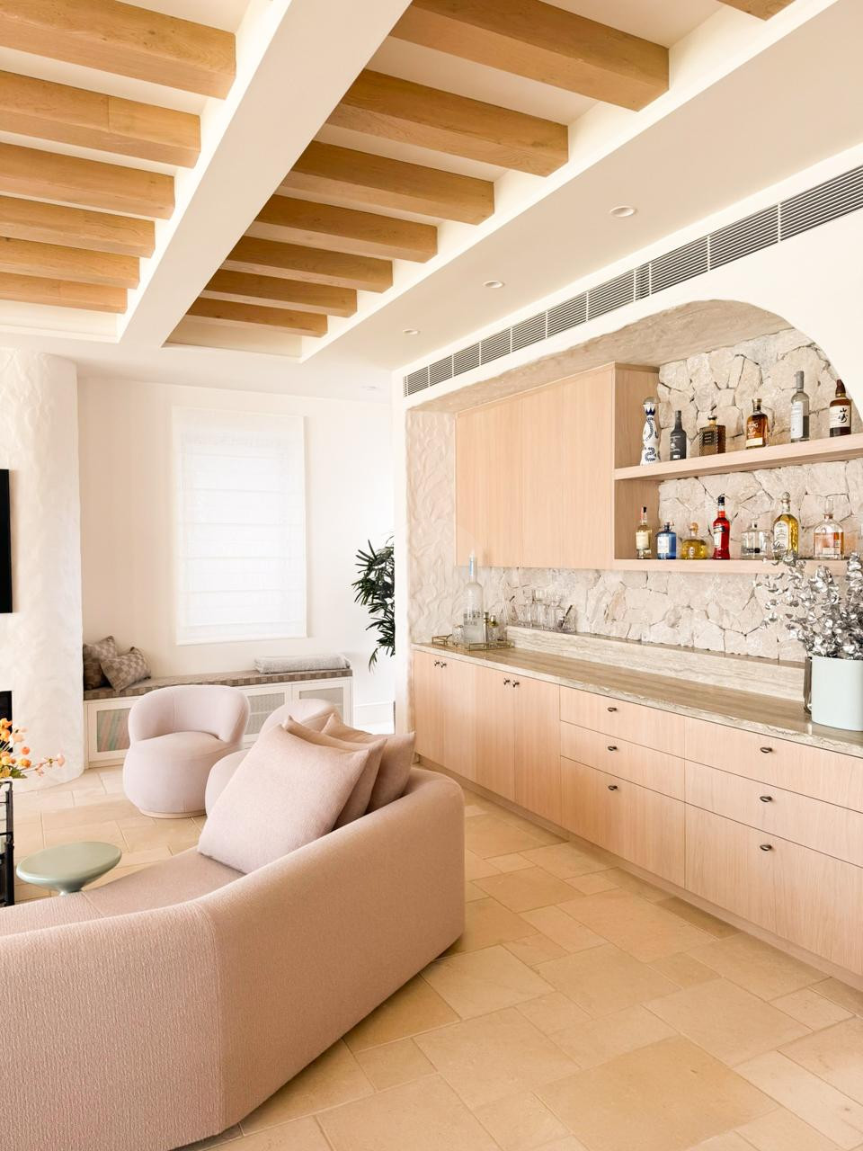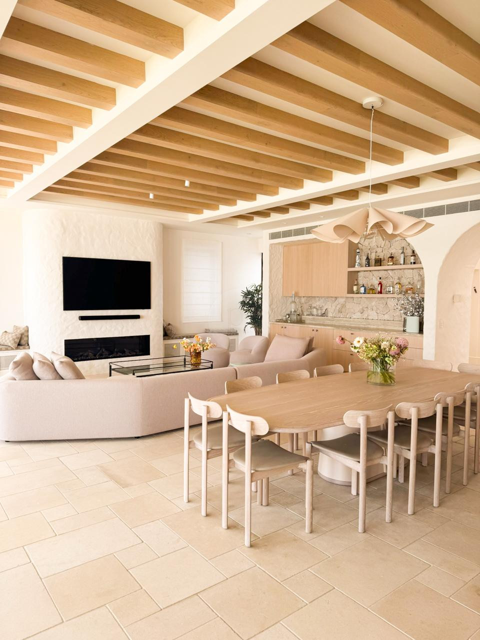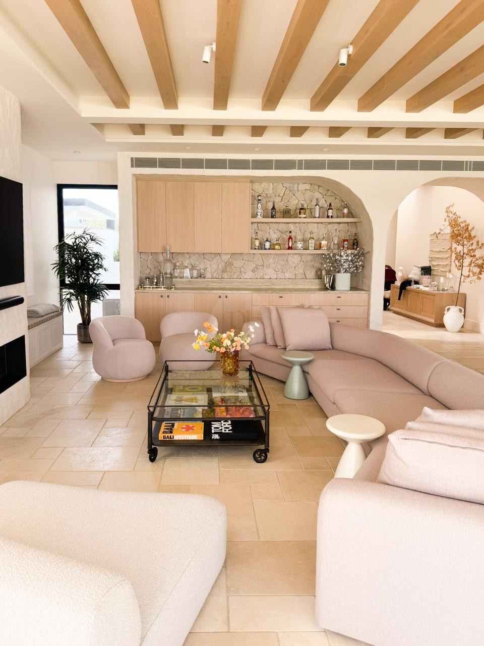 Textural details such as a cobbled stone driveway, tiled floors, rough-rendered finishes, and striking crazy-paved feature walls add visual depth and character, enhancing every shot. Multiple double-height voids and skylights ensure the villa is bathed in natural light throughout the day, creating the perfect environment for both photography and filming.