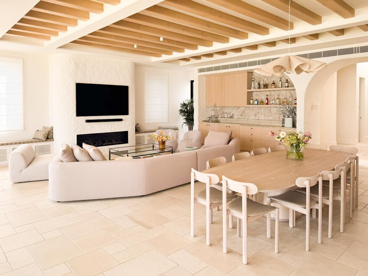A soaring double-height entry with expansive voids and skylights sets a dramatic stage, drawing natural light deep into the villa. Open-plan living flows seamlessly to the outdoors through large doors, creating a cinematic connection between interior and exterior spaces.