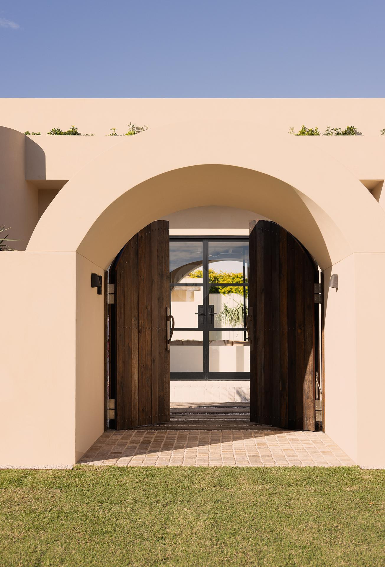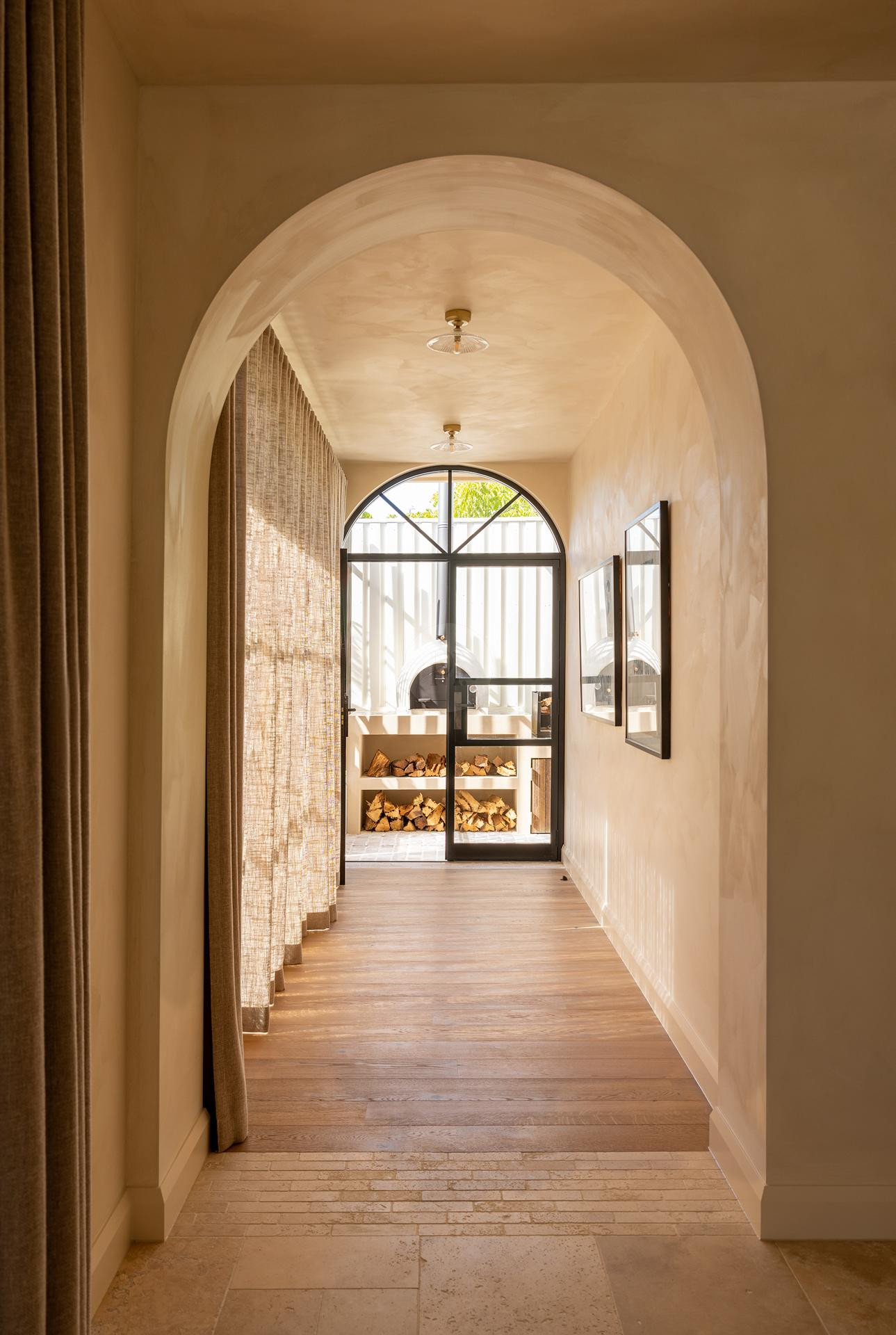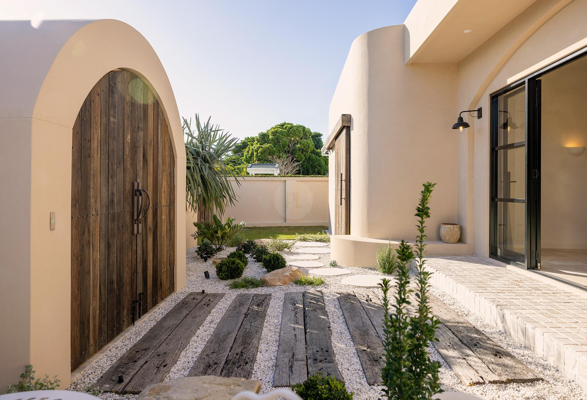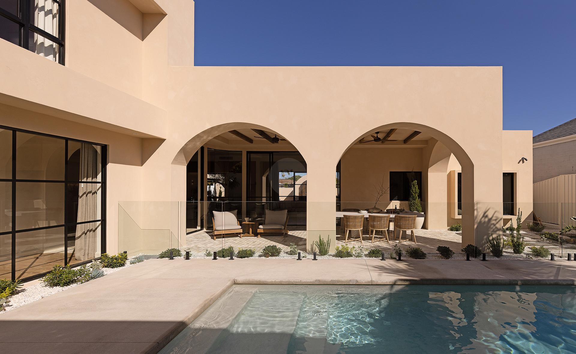 Seamless indoor-outdoor living enhances the property’s visual appeal, with expansive outdoor spaces including a sparkling pool, charming courtyard, and inviting BBQ area with a pizza oven and wood-fired spit-roast pit. Architectural arches, rendered feature walls, and a welcoming rear verandah add character and depth, providing multiple shoot-ready backdrops throughout the home.