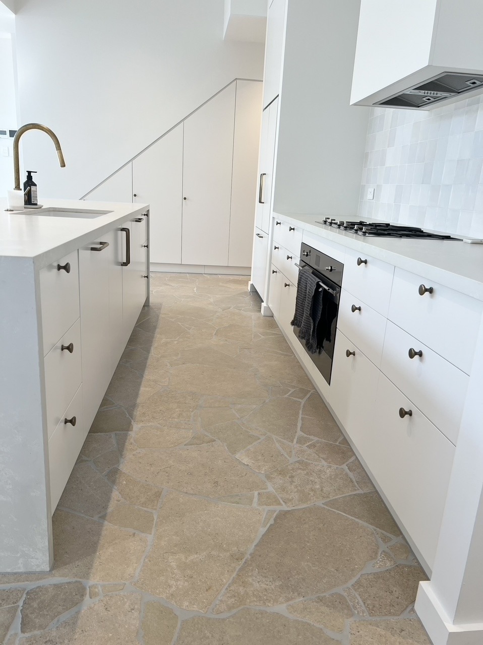The north-facing orientation of the home ensures that natural sunlight floods the interiors through the floor-to-ceiling glass windows, highlighting the earthy and minimalistic decor. The use of neutral tones and natural textures, complemented by fixtures made from organic brushed brass, exudes a sense of imperfect perfection.