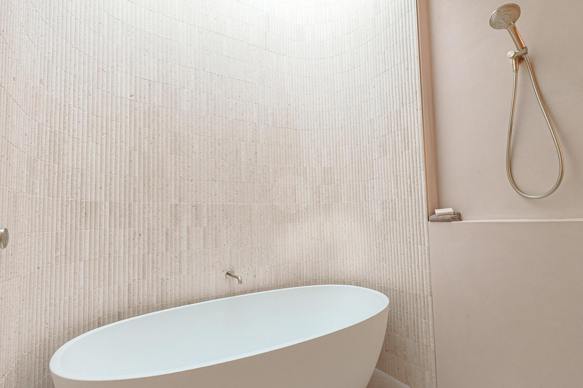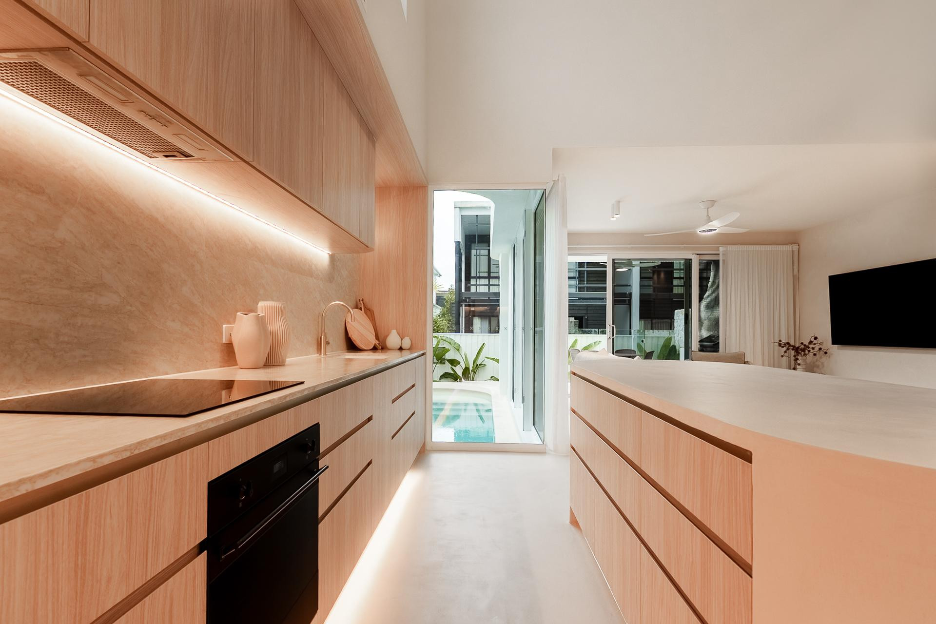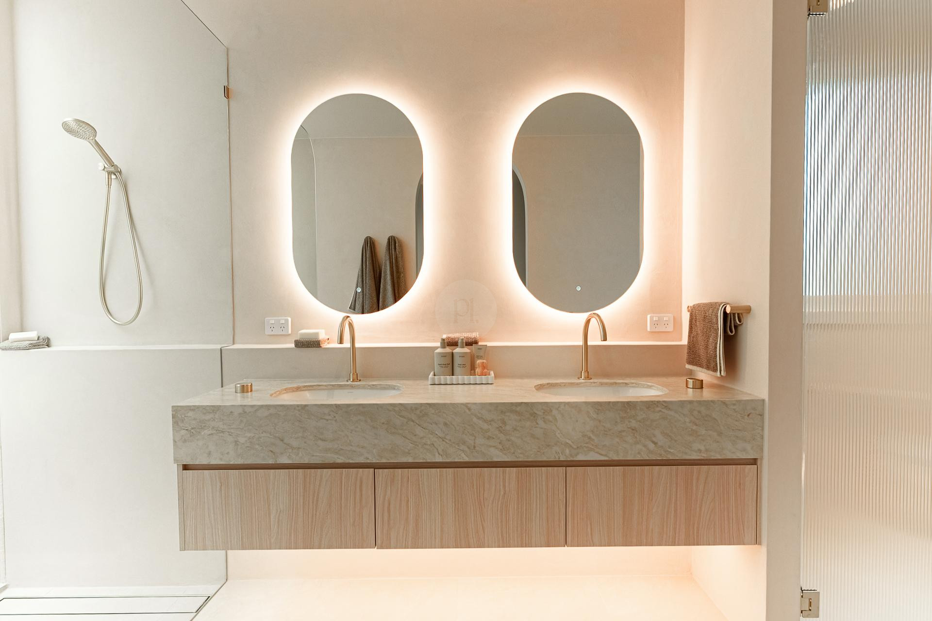 Boasting beautiful arches and curves that add character and charm, the modern kitchen fitted with gorgeous stone bench tops and an intentional lighting design to enhances its aesthetic appeal. The alfresco area frames an arched plunge pool, surrounded by micro cement, offering a versatile space to showcase your products.