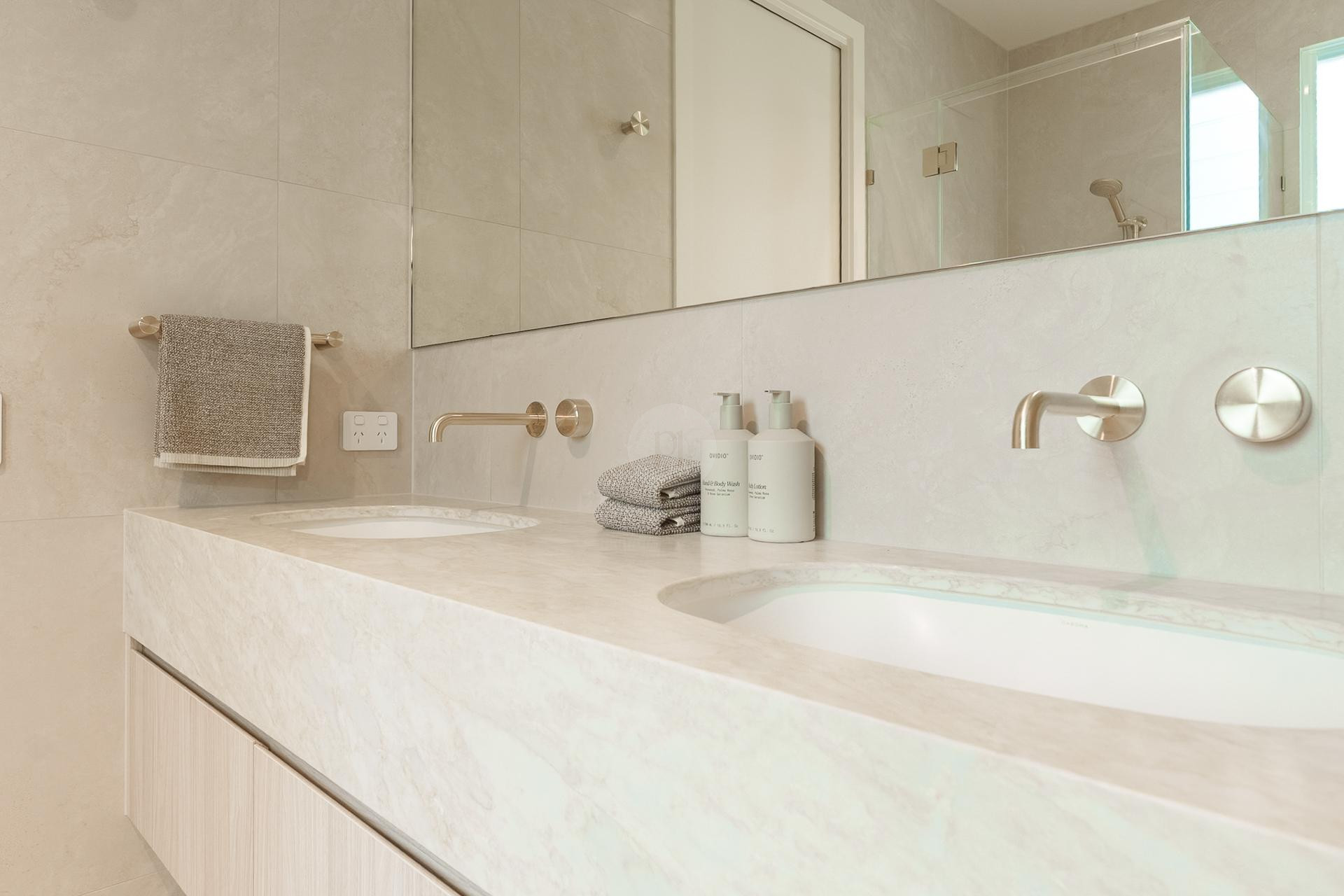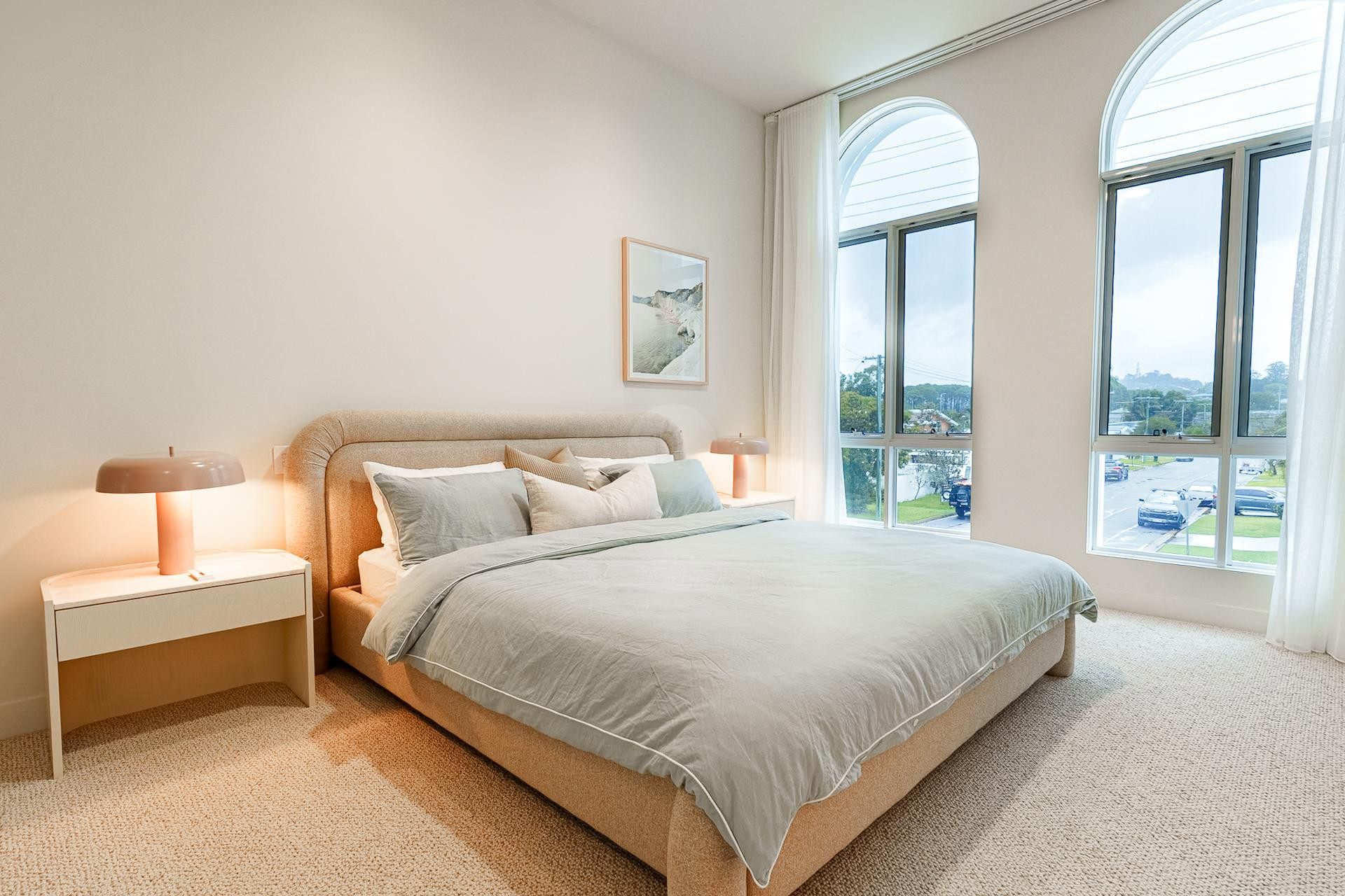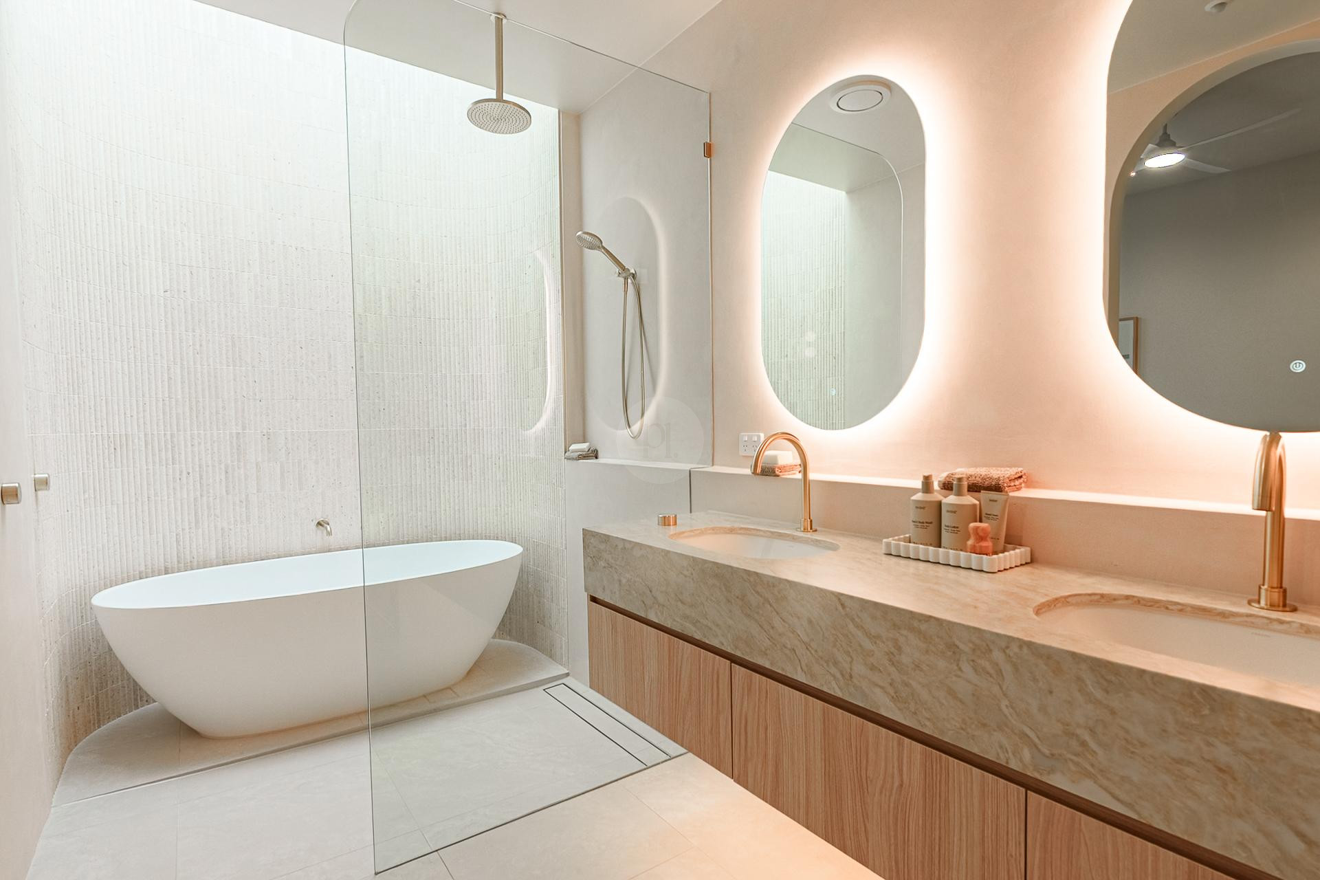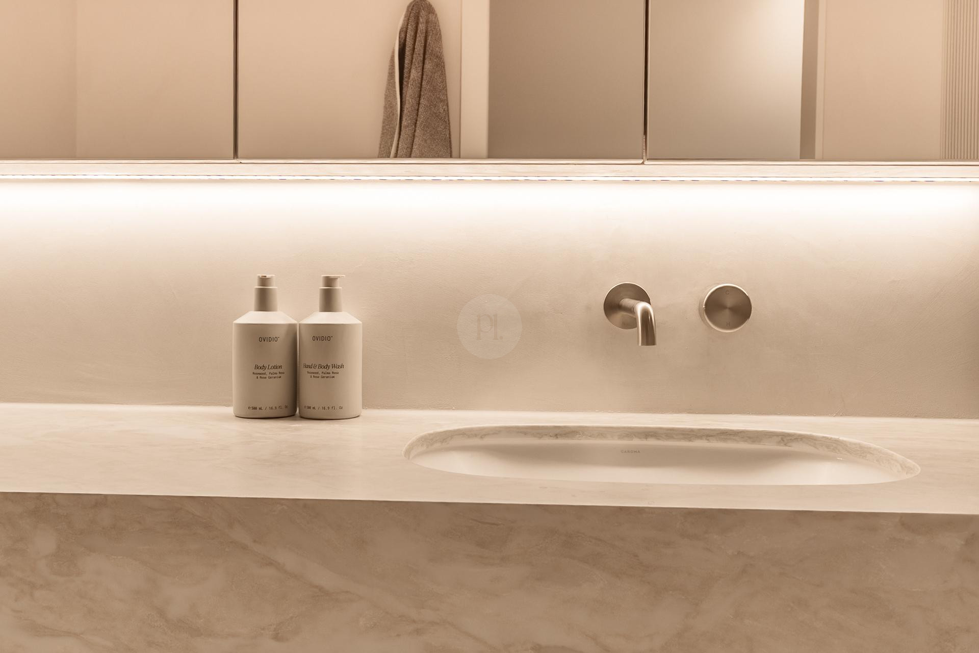 Boasting beautiful arches and curves that add character and charm, the modern kitchen fitted with gorgeous stone bench tops and an intentional lighting design to enhances its aesthetic appeal. The alfresco area frames an arched plunge pool, surrounded by micro cement, offering a versatile space to showcase your products.