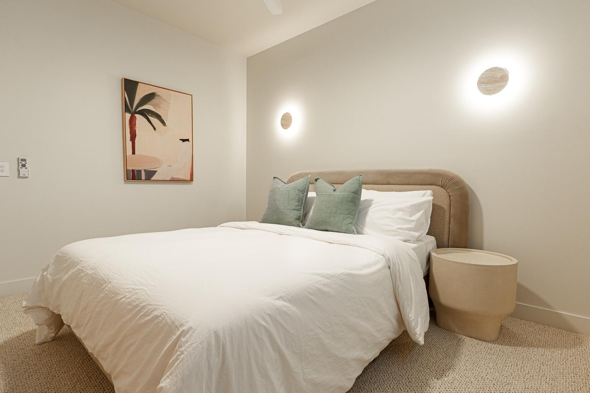As you step inside, you are greeted by micro cement flooring and walls that create a seamless flow throughout the space. The carefully curated interiors feature an abundance of natural light, thanks to large windows and skylights that illuminate every corner. The feature bath in the master ensuite, complete with a skylight, is a showstopper, providing a stunning backdrop for your creative projects.