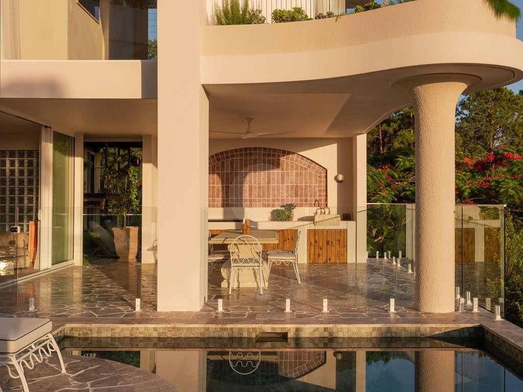 Outdoors, the property continues to deliver. A landscaped courtyard, BBQ entertaining area and tranquil water views capture the essence of the Australian coastal lifestyle. The balcony and verandah provide elevated perspectives and golden-hour magic, while the garden offers softness and contrast to the home’s sculptural interiors.