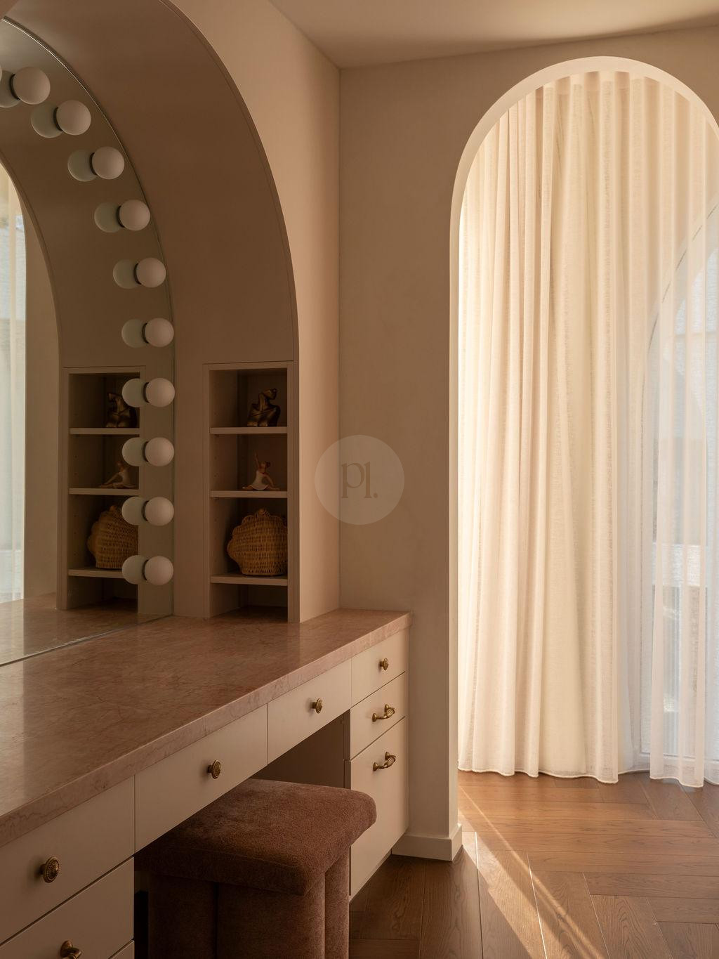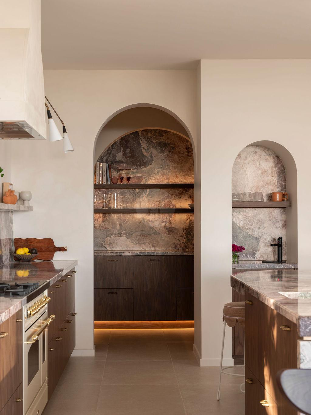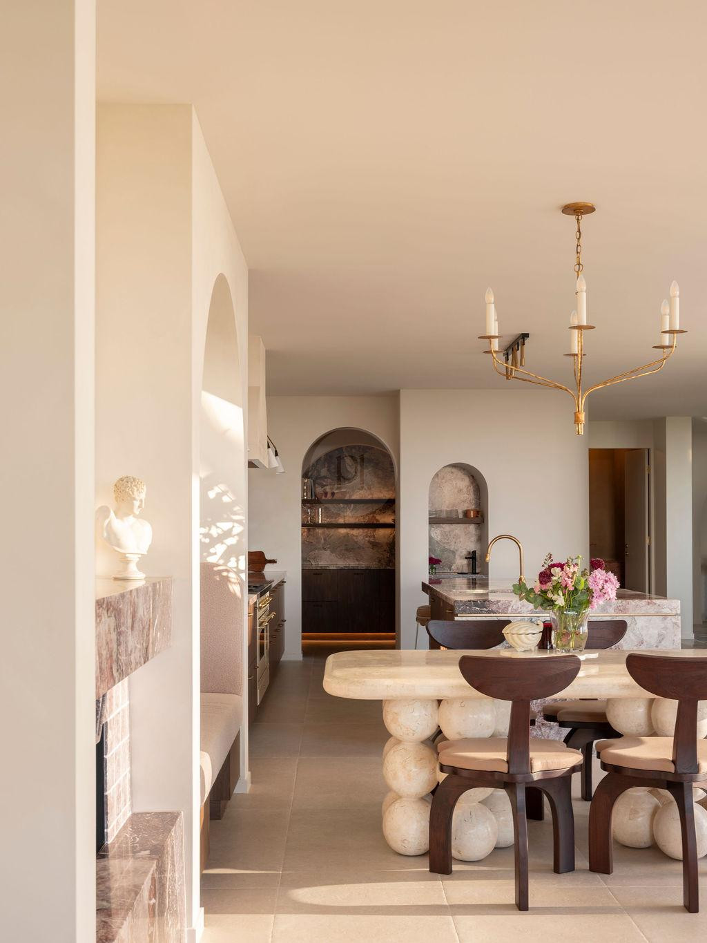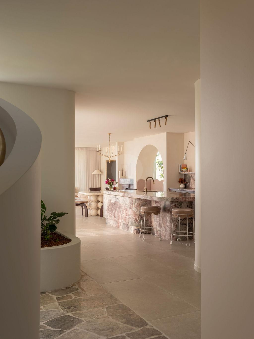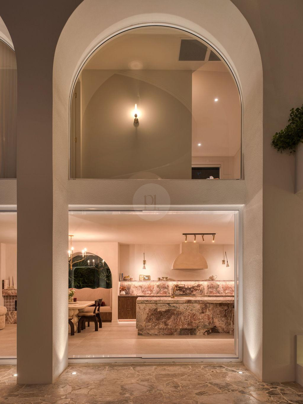From the moment you enter, the home reveals a series of cinematic moments. A breathtaking rose marble kitchen anchors the open-plan interior, offering a refined hero backdrop for lifestyle, fashion and product shoots. Oversized arches frame each space with architectural rhythm, while statement tiles and curated finishes create depth, dimension and visual intrigue from every angle.