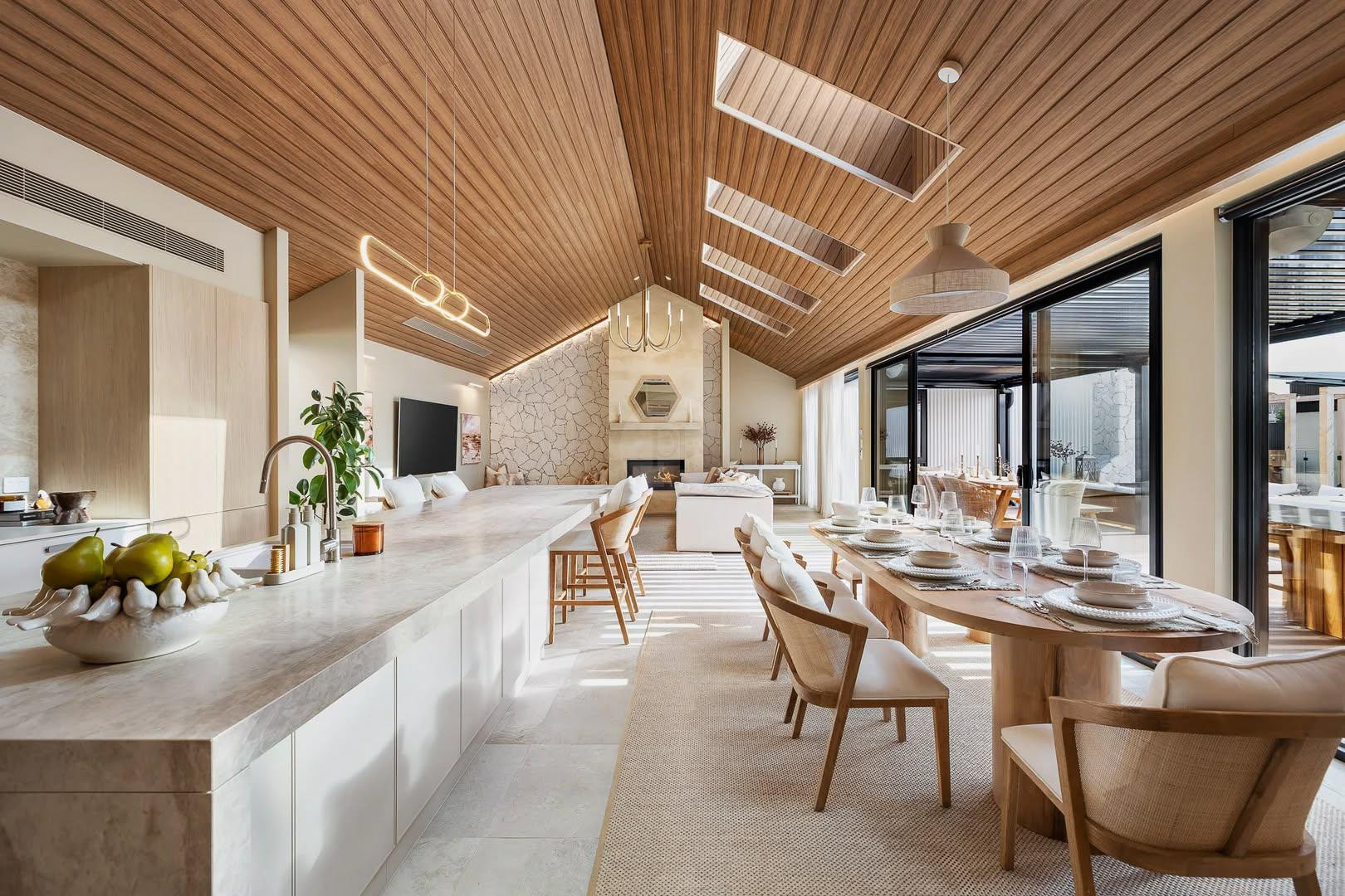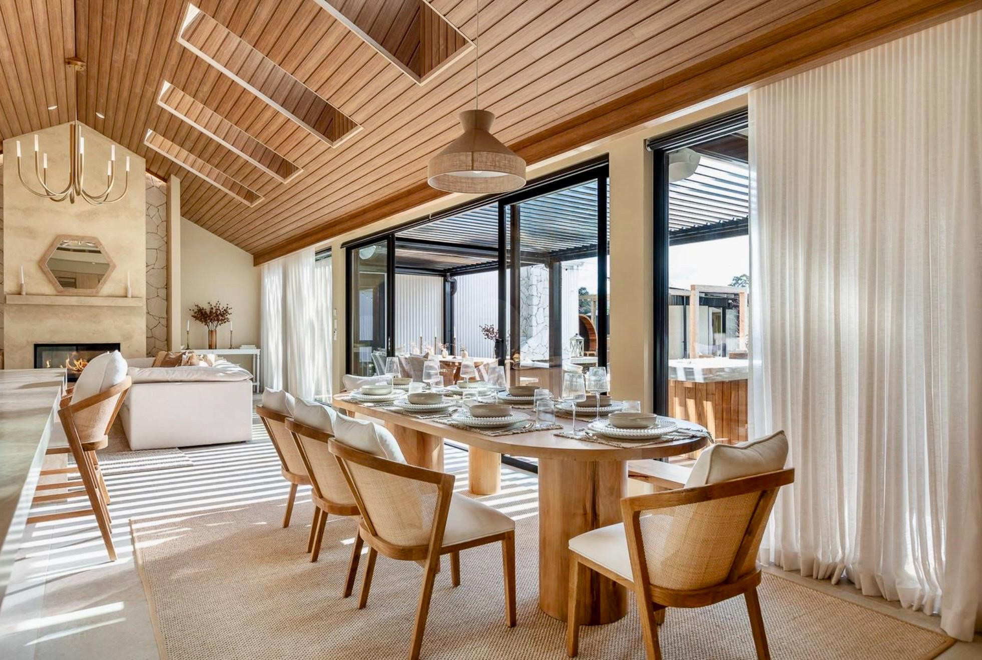 Welcome to Wide Acre Lodge, a stunning architectural gem nestled in the heart of Daylesford, VIC. This award-winning property, designed with a modern organic aesthetic, is the perfect backdrop for your next photoshoot, TVC, or filming project. With its expansive open-plan living spaces and sophisticated design elements, including travertine finishes and soft neutral tones, this location offers a highly versatile environment that is camera-ready for any creative vision.