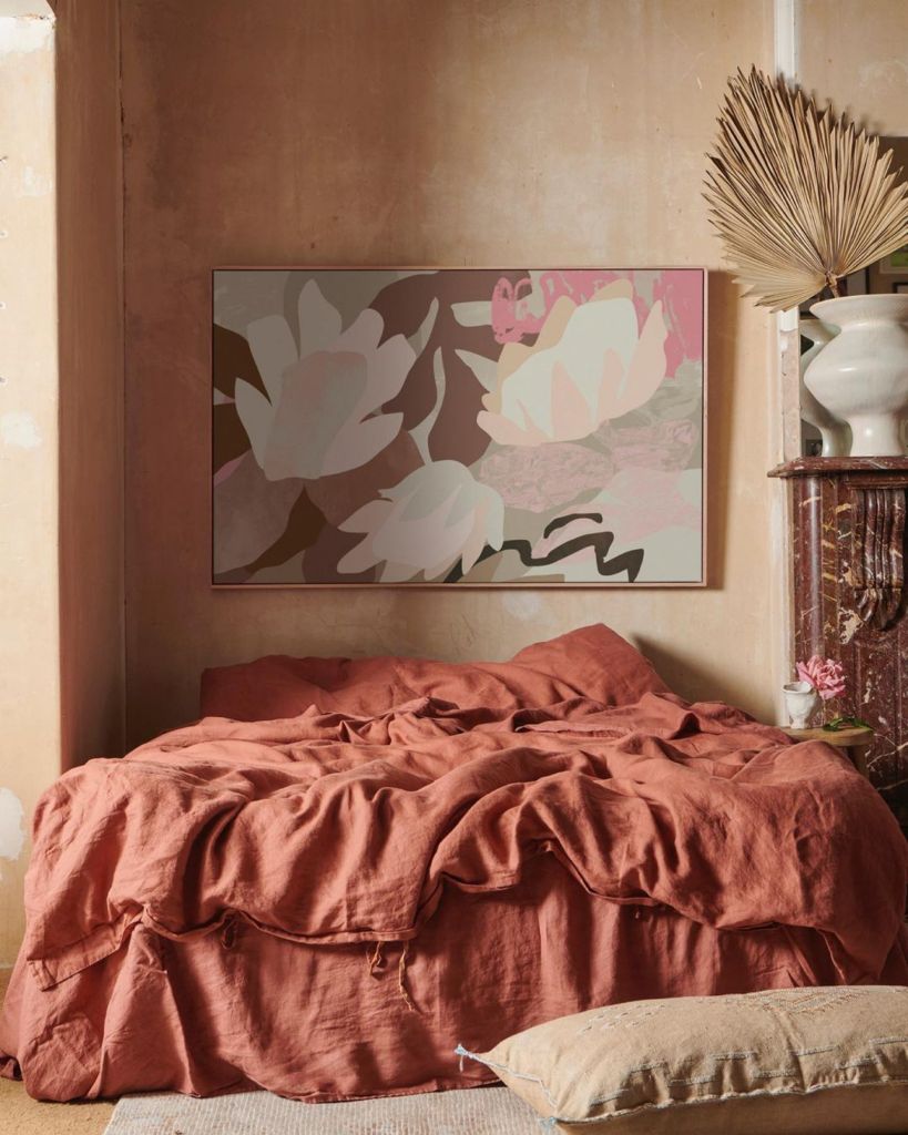 Kimmy Hogan on location at Alexton House in the Mornington Peninsula in Victoria for the launch of three new art collections – Ilsa, Lotus and Paloma. When selecting a location, the artist wanted a rich, warm, tropical vibe, and stated the shoot wasn’t just about capturing artwork – it was about the vibe!