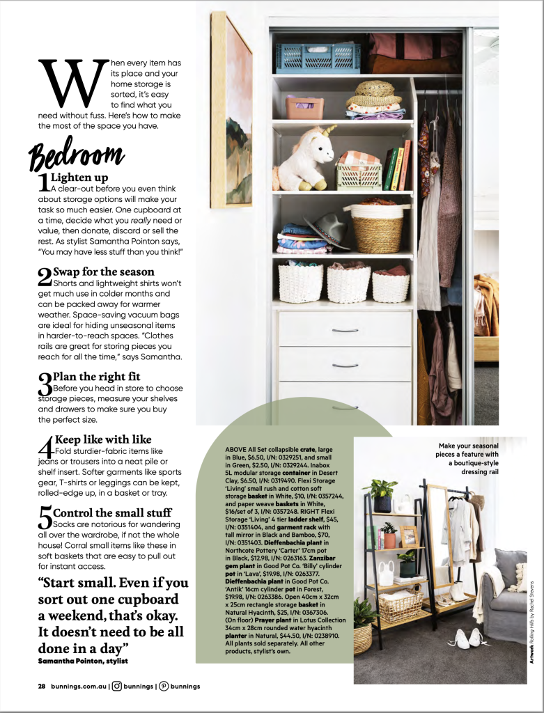 Bunnings Magazine on location for a home storage shoot at Alcova House in Gymea Beach